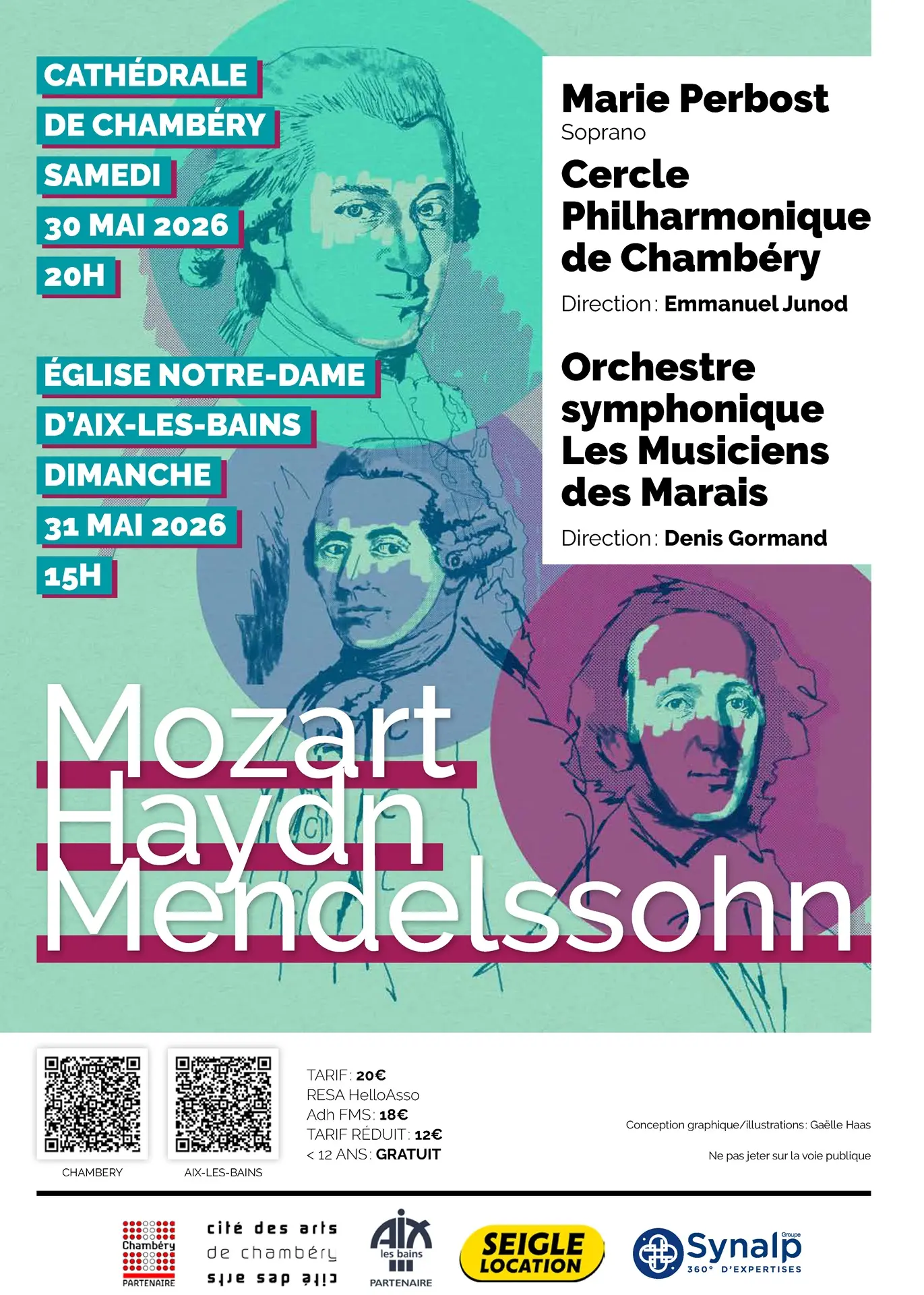 Le Cercle Philharmonique de Chambéry vous donne rendez-vous à ce concert avec la participation exceptionnelle de la soprane Marie Perbost. Le chœur sera accompagné par l’orchestre symphonique Les Musiciens des Marais, sous la direction d’Emmanuel Junod.