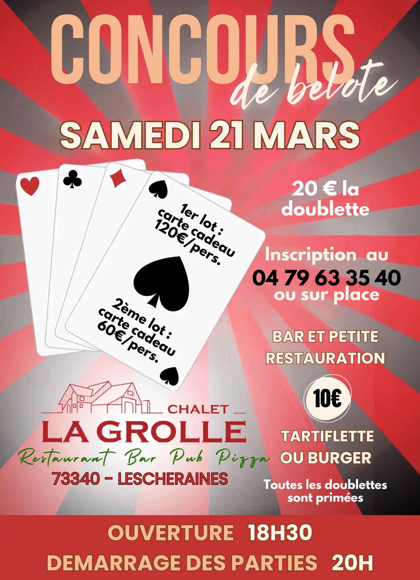 Concours de belote au chalet la grolle, toutes le doublettes sont primées !