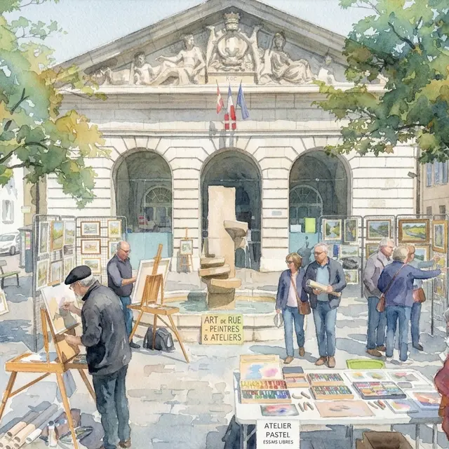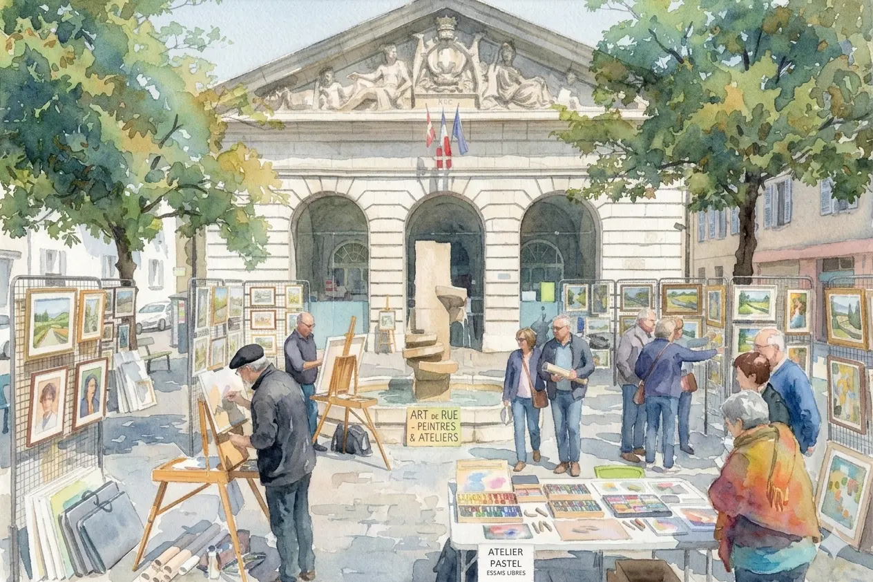 Vous pourrez flâner sur la place, entre les chevalets et les peintures jusqu’à 19h00. Et si la météo ne nous est pas favorable, on se retrouve dans la salle Grenette, derrière la Mairie de Quartier