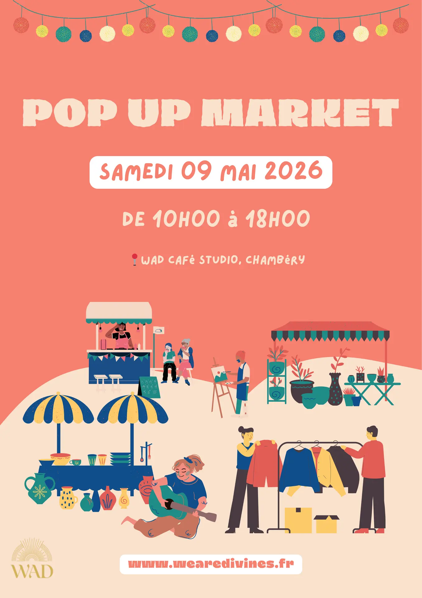 Pop Up Market kids friendly : friperie, photographe, artiste peintre, fleurs de saison bio de Savoie. Entre art, matcha et shopping pour une journée sans chichi avec beaucoup de blabla à Chambéry
