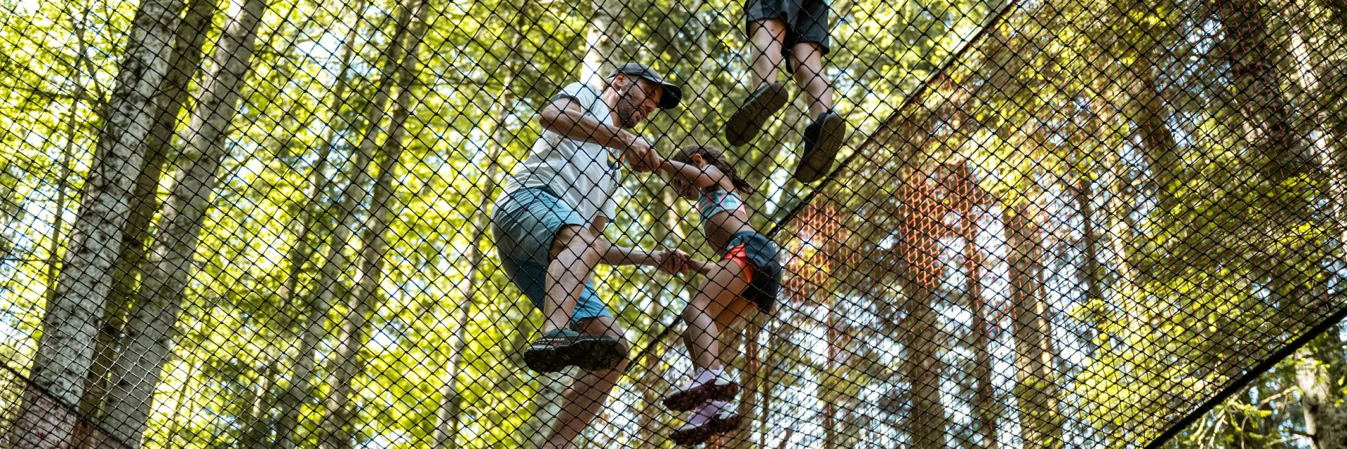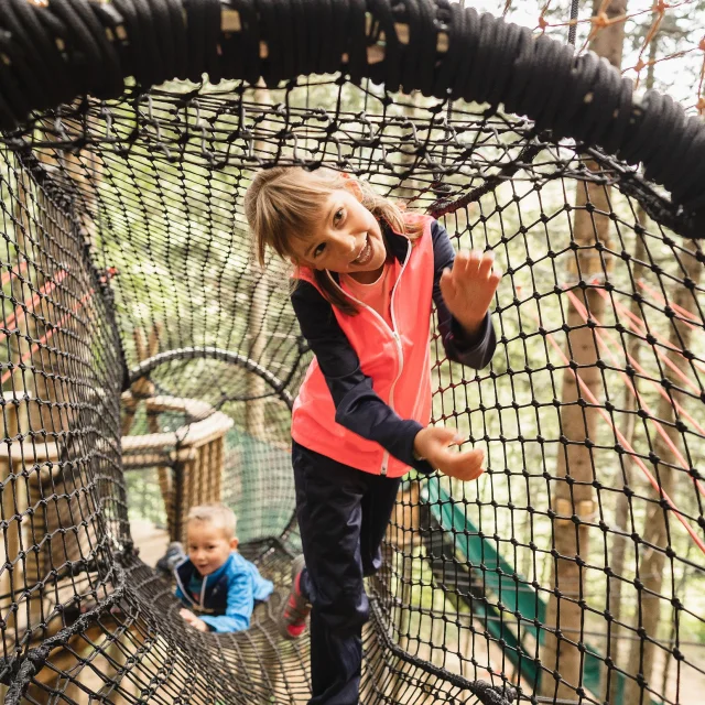 Imaginez 7000 m² de filets suspendus, de trampolines, de cabanes perchées et de toboggans géants… Le tout, sans baudrier ! Le Pays Suspendu des Géants est une invitation à grimper, bondir, rire et explorer en toute liberté. Accessible dès 2 ans (80 cm), c’est l’activité idéale pour les familles, avec ou sans vertige. Une aventure à vivre ensemble, où chaque pas mène vers un nouveau fou rire ou une cabane secrète.