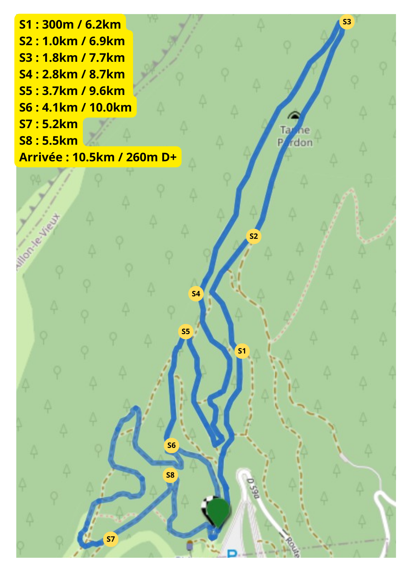 - a trail that starts on the ski slopes then follows the black run "Les fées" in the Nordic park
