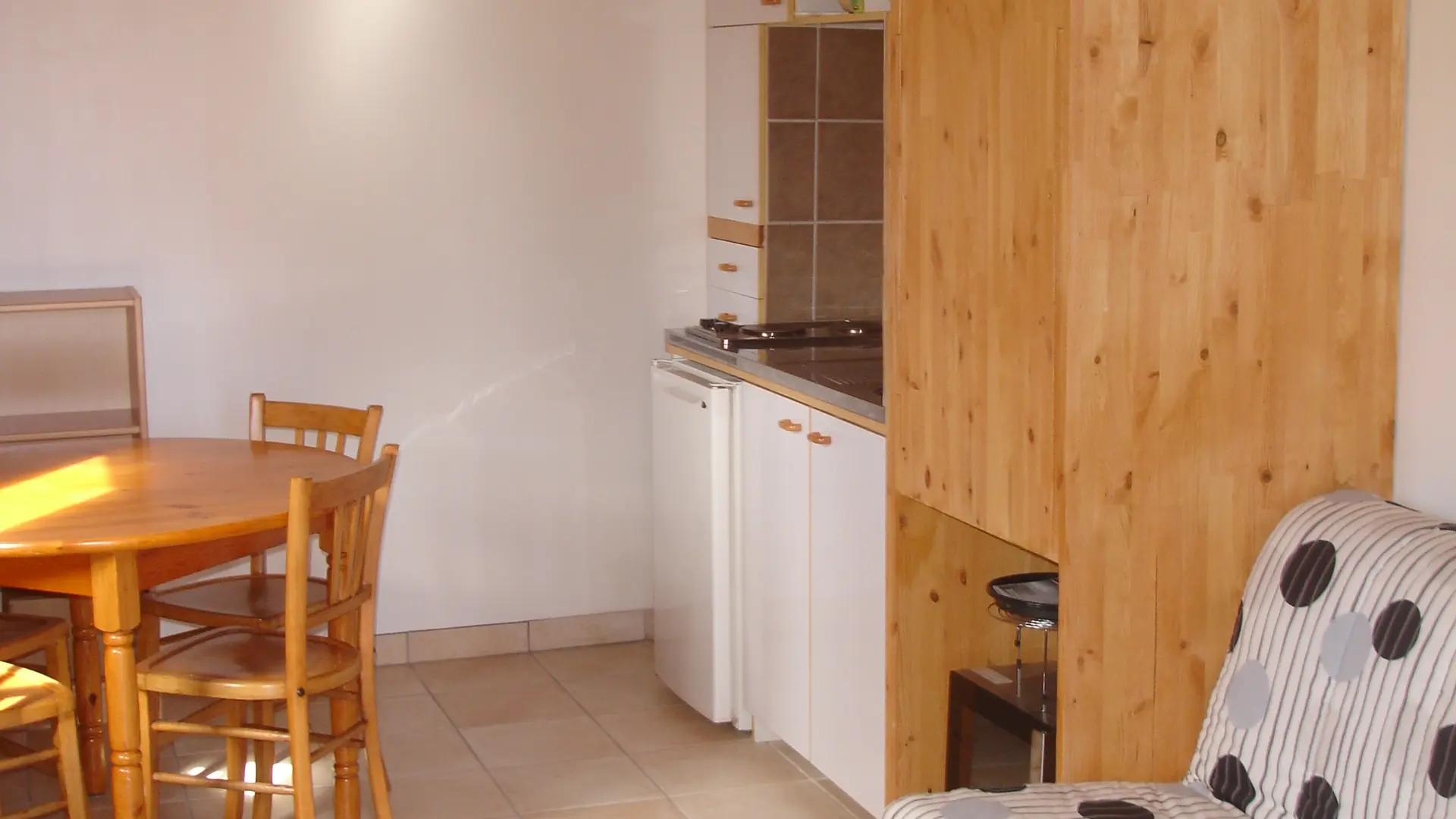 In an independent chalet situated in the heart of La Féclaz, a 27 square meters flat for 4 persons, right at the bottom of ski slopes and at the start of crosscountry tracks, only 5mns walk from all shops.