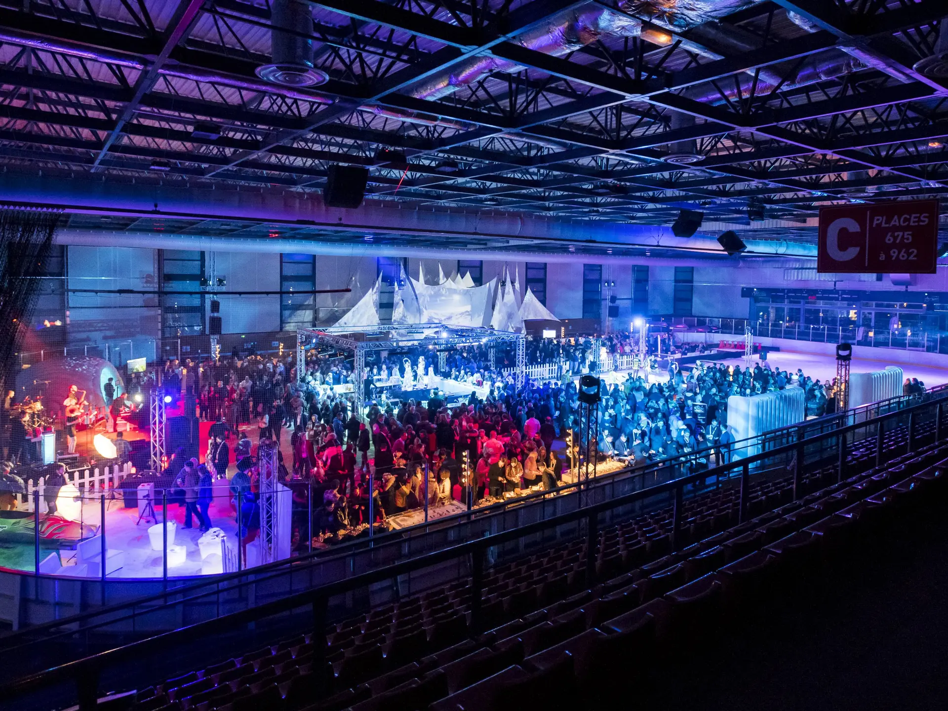 This 1624 m² skating rink can be partially covered: 944 m² flooring available.