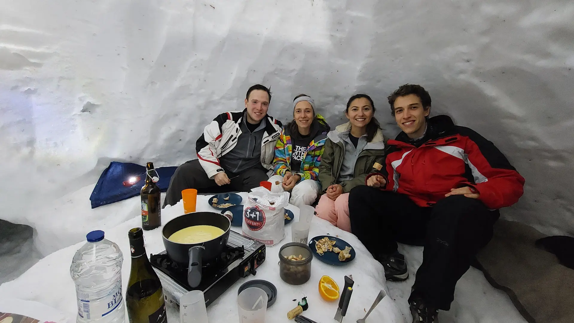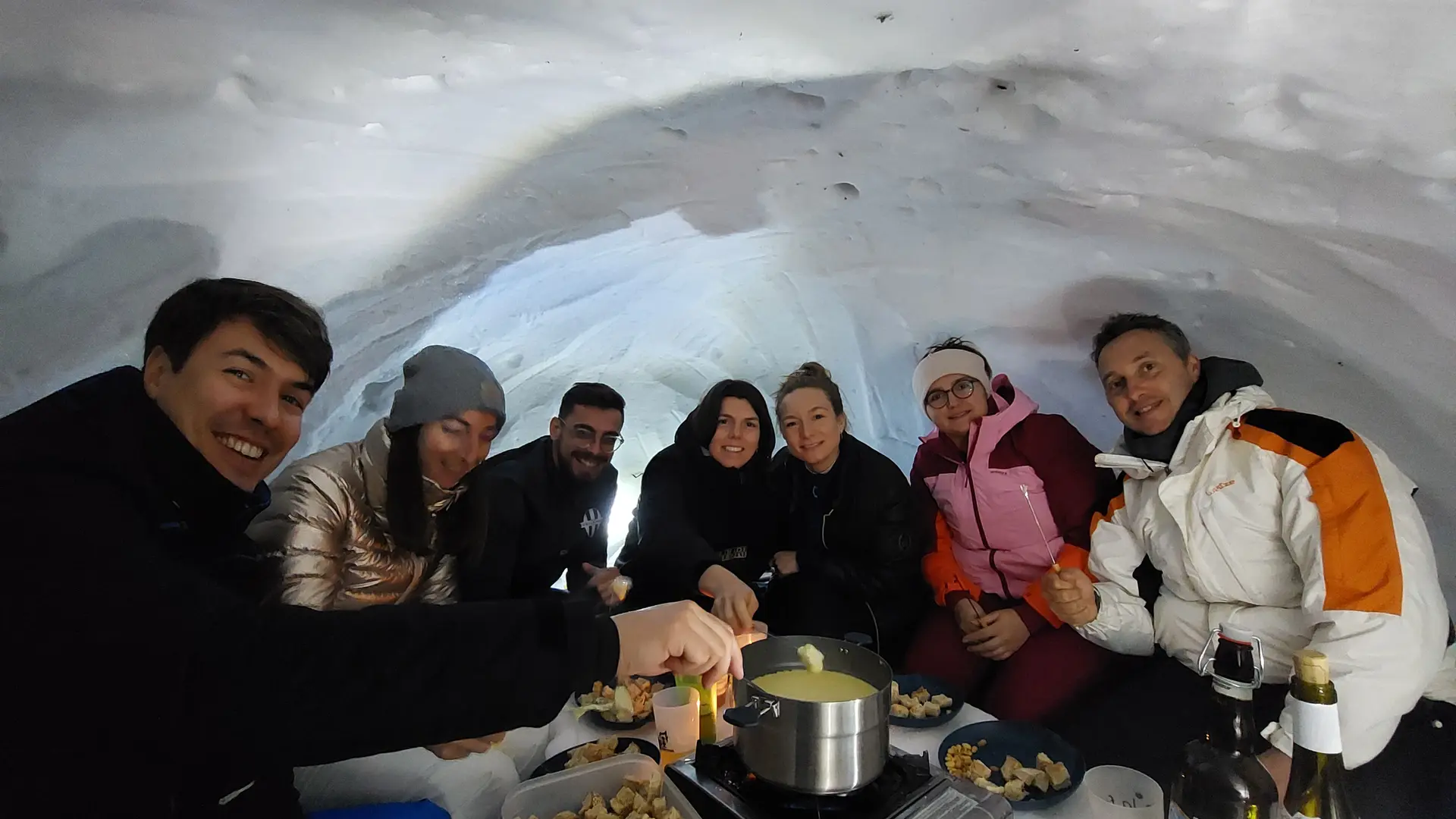 Étienne, a mountain guide, offers unusual snowshoe excursions: night walks by headlamp, with fondue meals in igloos!