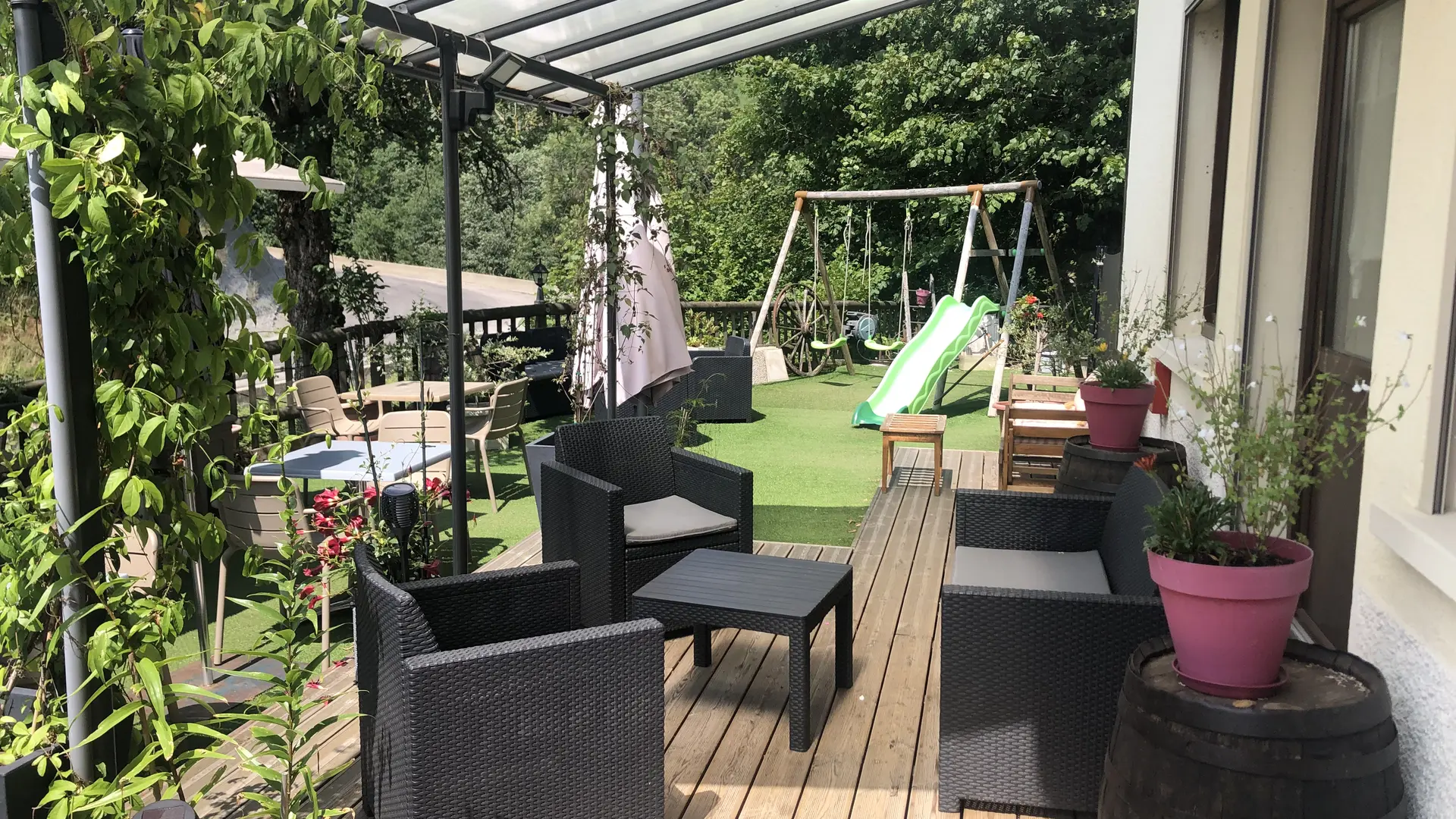 On the GR 96 hiking trail around the Bauges mountains. Ski resort, activities, and shops nearby. Traditional family cuisine and local specialties. Groups welcome. Family events. Themed evenings. Partially shaded terrace open summer and winter.