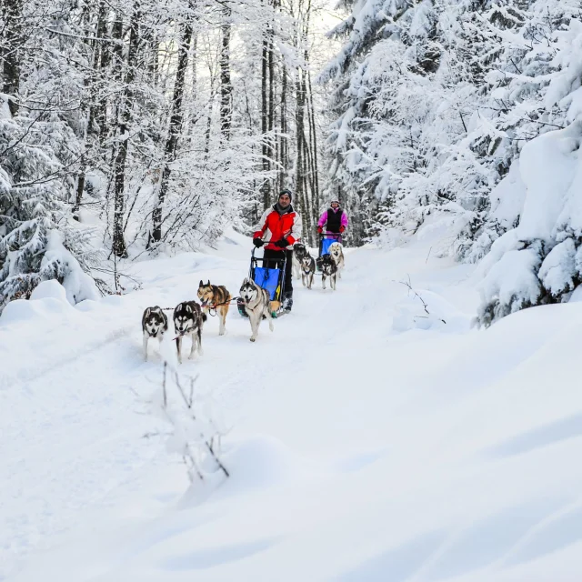 Si l’enneigement est au rendez-vous, embarquez pour une randonnée en traîneau à travers la forêt enneigée. Une immersion nordique qui ravira petits et grands !