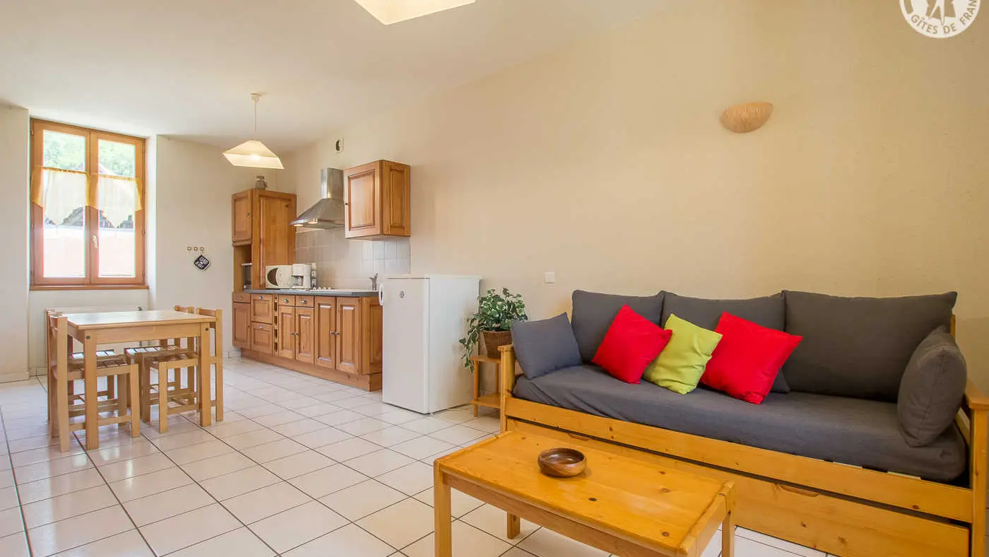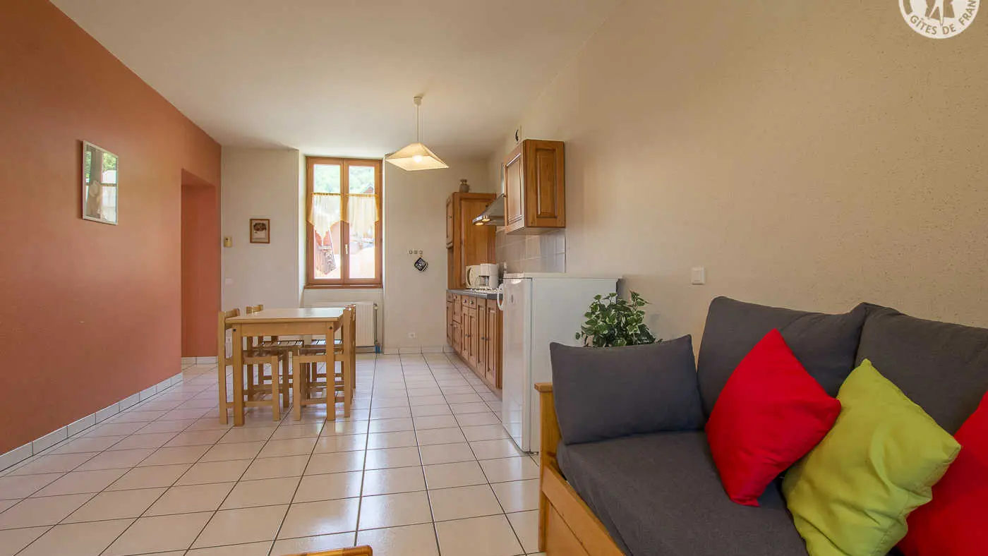 3 gîtes + stanza multiuso nell'edificio. Wifi gratis. Gîte al 1° piano: soggiorno con angolo cottura (2 letti singoli estraibili), 1 camera da letto (1 letto matrimoniale), bagno (vasca), riscaldamento centralizzato, terrazzo, terreno comune con bocce a 100 m, parcheggio privato. Sci Aillon le Jeune 12 km, la Féclaz 15 km. Le Margeriaz 18 km. Arrampicata 5 km. Terme Challes les Eaux 13 km.