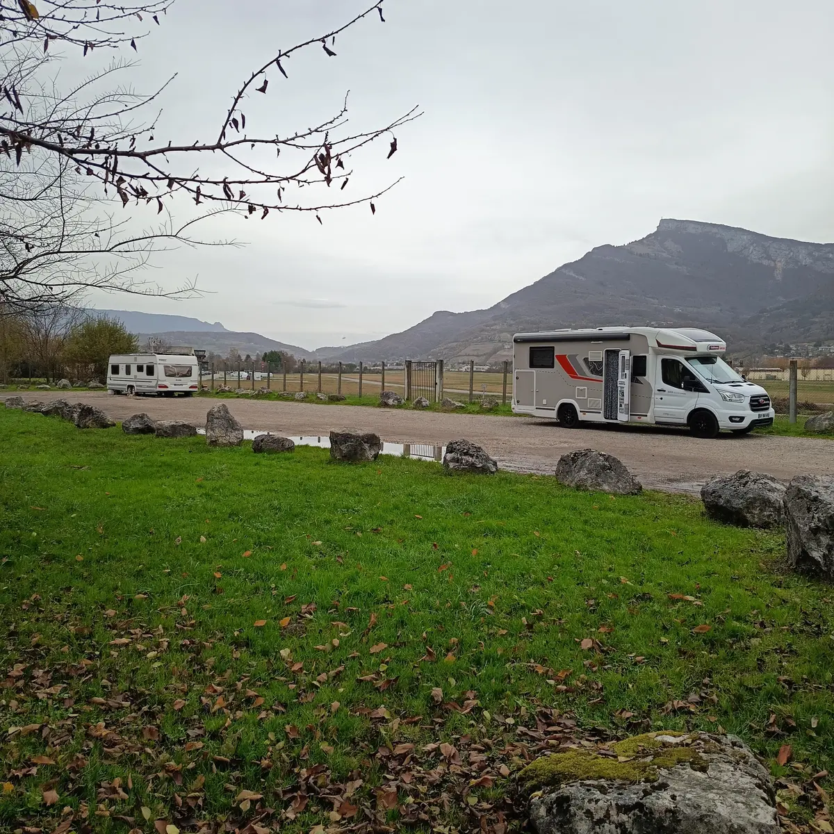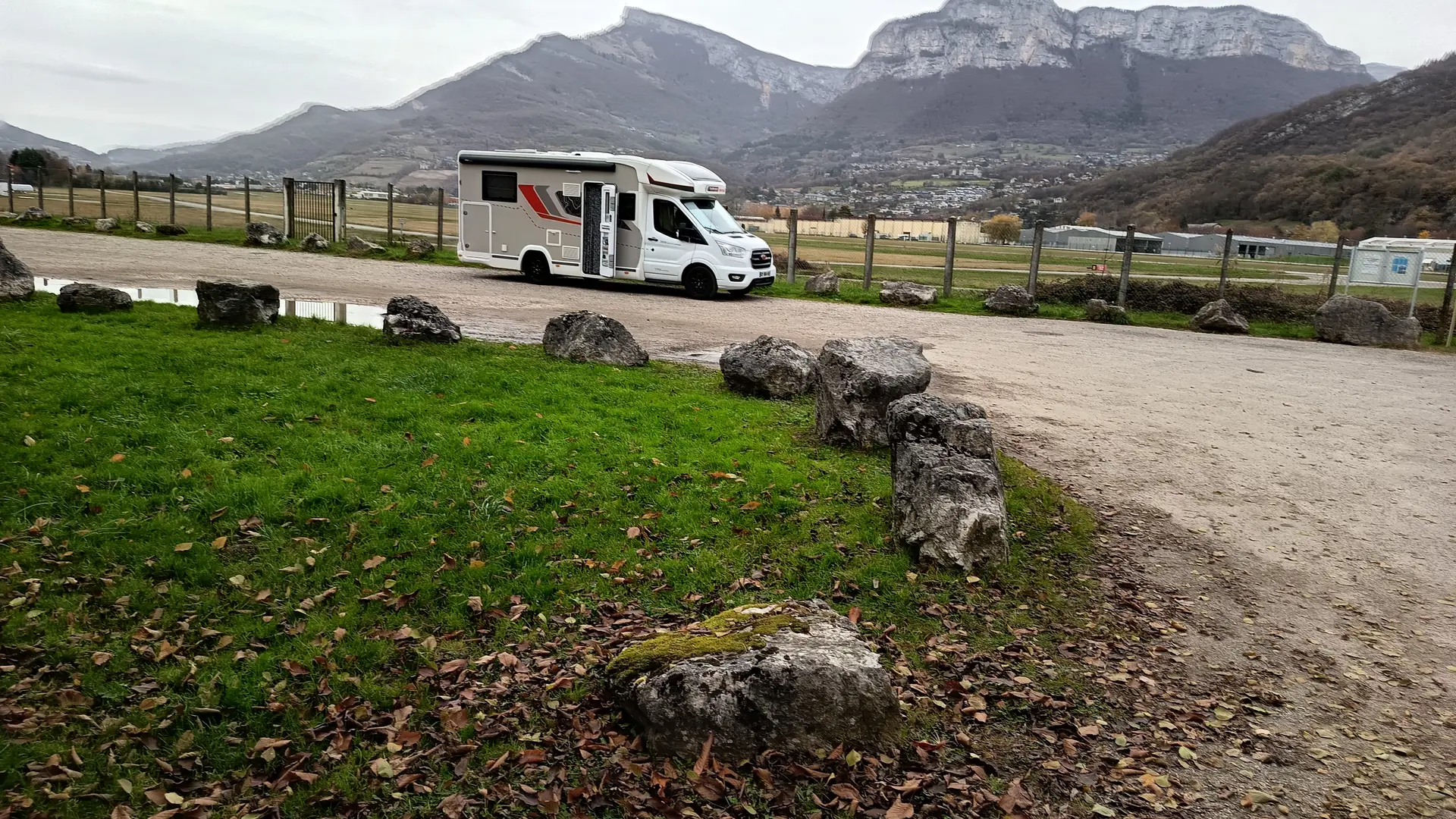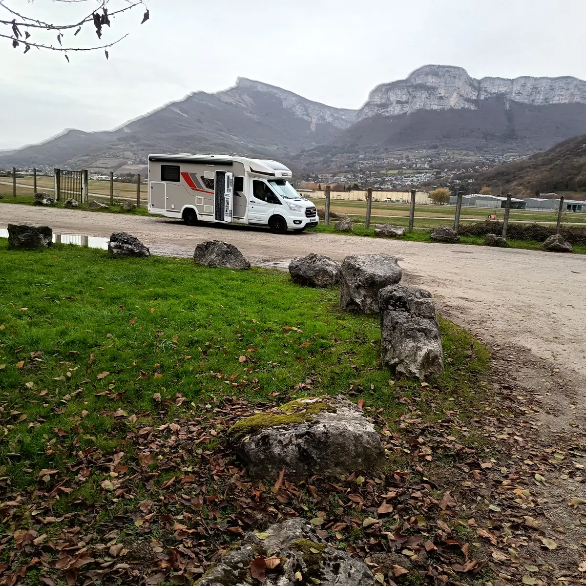 Parking pour camping car à côté de l'aérodrome de Challes-les-Eaux.