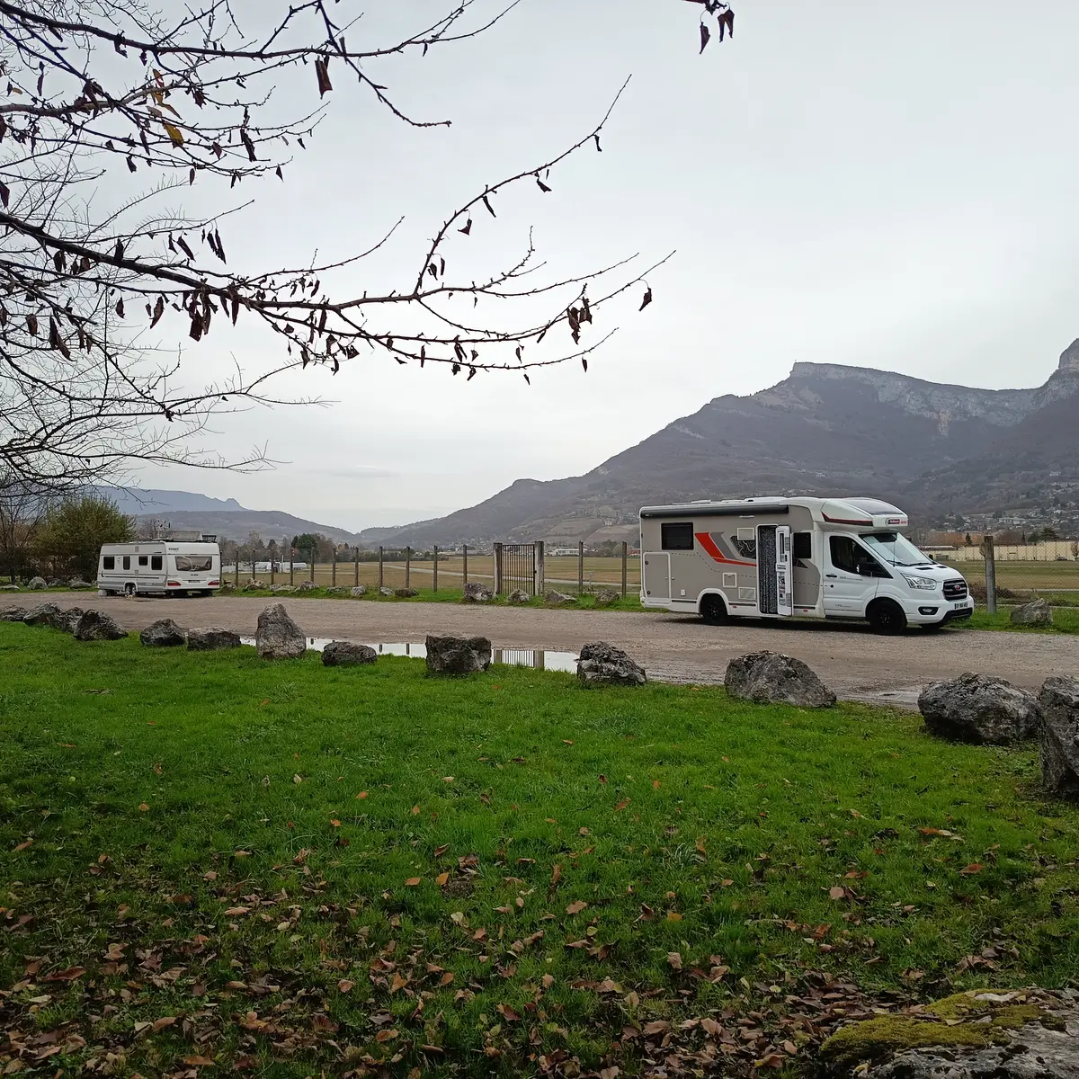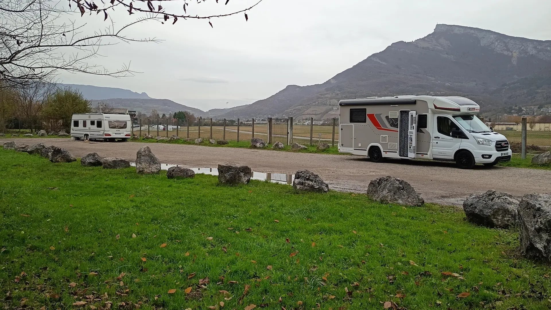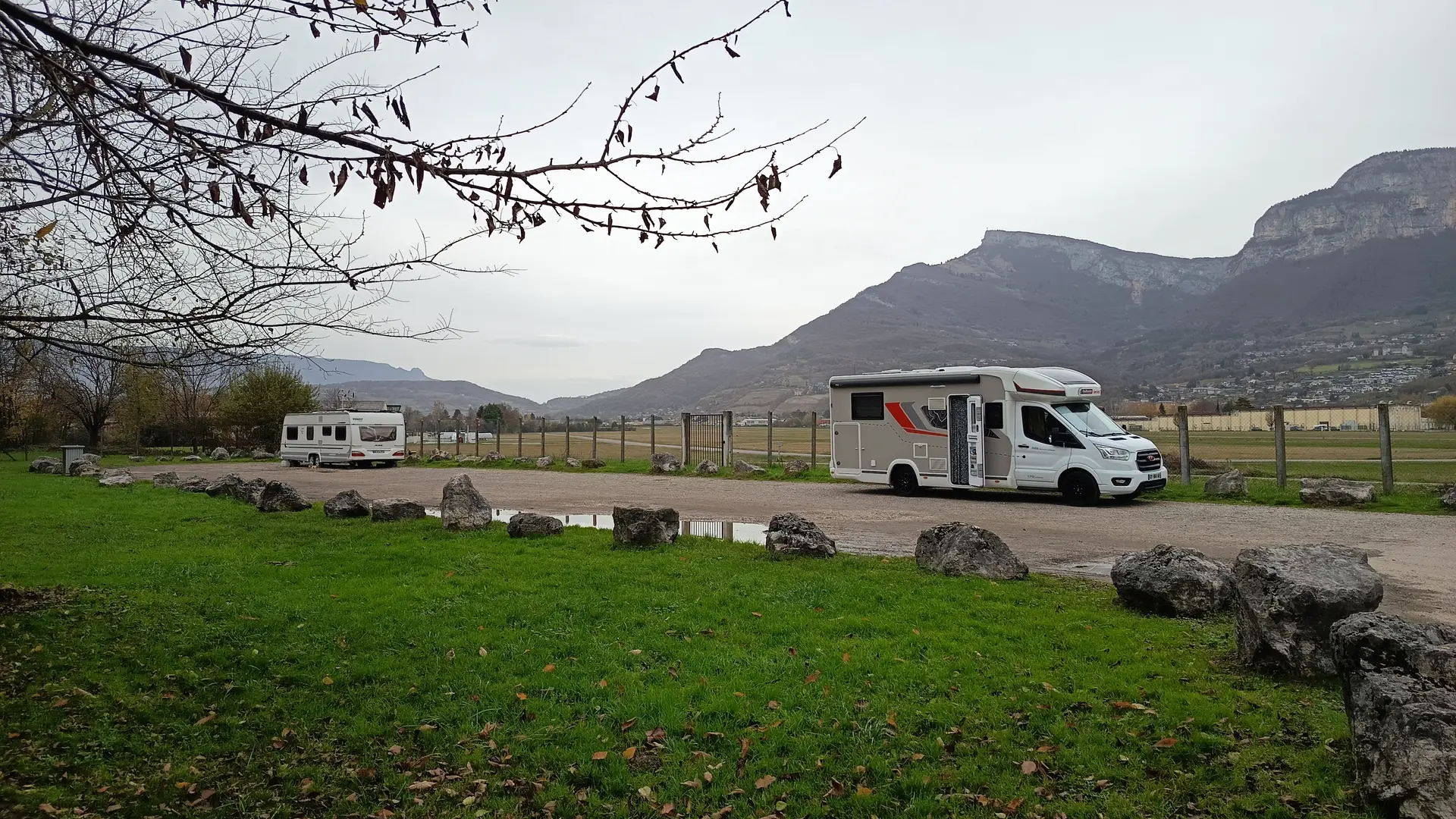 Parking pour camping car à côté de l'aérodrome de Challes-les-Eaux.