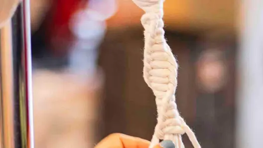 Ensuite, une fois les nœuds maîtrisés, vous réaliserez votre suspension. Vous vous émerveillerez en voyant votre création prendre forme nœud après nœud. Et vous étonnerez de la patience que vous développez et de l'état méditatif dans lequel le macramé peut vous plonger.