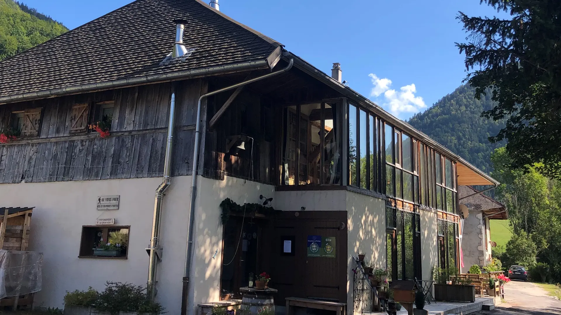 Cette maison d'hôtes est idéalement placée au départ de nombreuses randonnées en été comme en hiver. Une vue plongeante sur la village d'Aillon-le-Jeune depuis le hameau de Chez Curiaz.