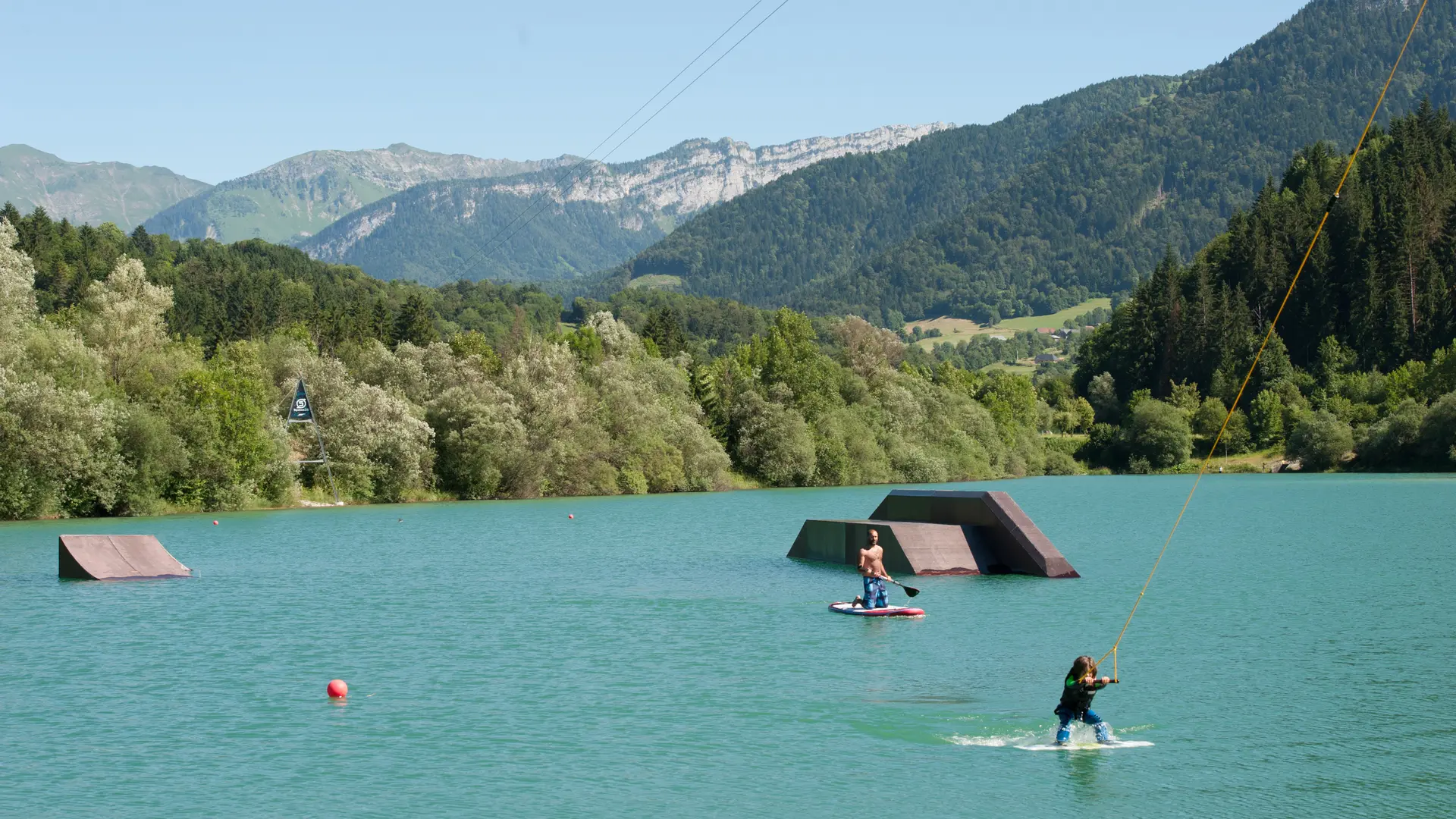 Une palette de loisirs variés : baignade avec plage aménagée, toboggan aquatique 3 pistes, jeux d'eau, aires de jeux, accro-bungy, wakeboard, watergames, pêche, promenade confort, terrains de tennis, pétanque, terrain multisports, ...
