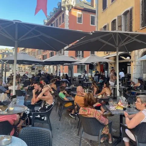 Situé en plein cœur du centre historique de Chambéry, à proximité de la Fontaine des Éléphants et du Château des Ducs de Savoie, nous vous accueillons au Café de l’Horloge dans une ambiance conviviale et détendue. À la fois bar, brasserie, glacier et pizzeria, nous proposons une carte généreuse et variée, idéale pour tous les moments de la journée. Notre grande terrasse, installée sur la très animée place Saint-Léger, offre un cadre privilégié pour profiter du charme de la vieille ville. Ouverts 7 jours sur 7 en été, nous sommes heureux de vous offrir un lieu de pause, de partage et de gourmandise entre amis ou en famille.