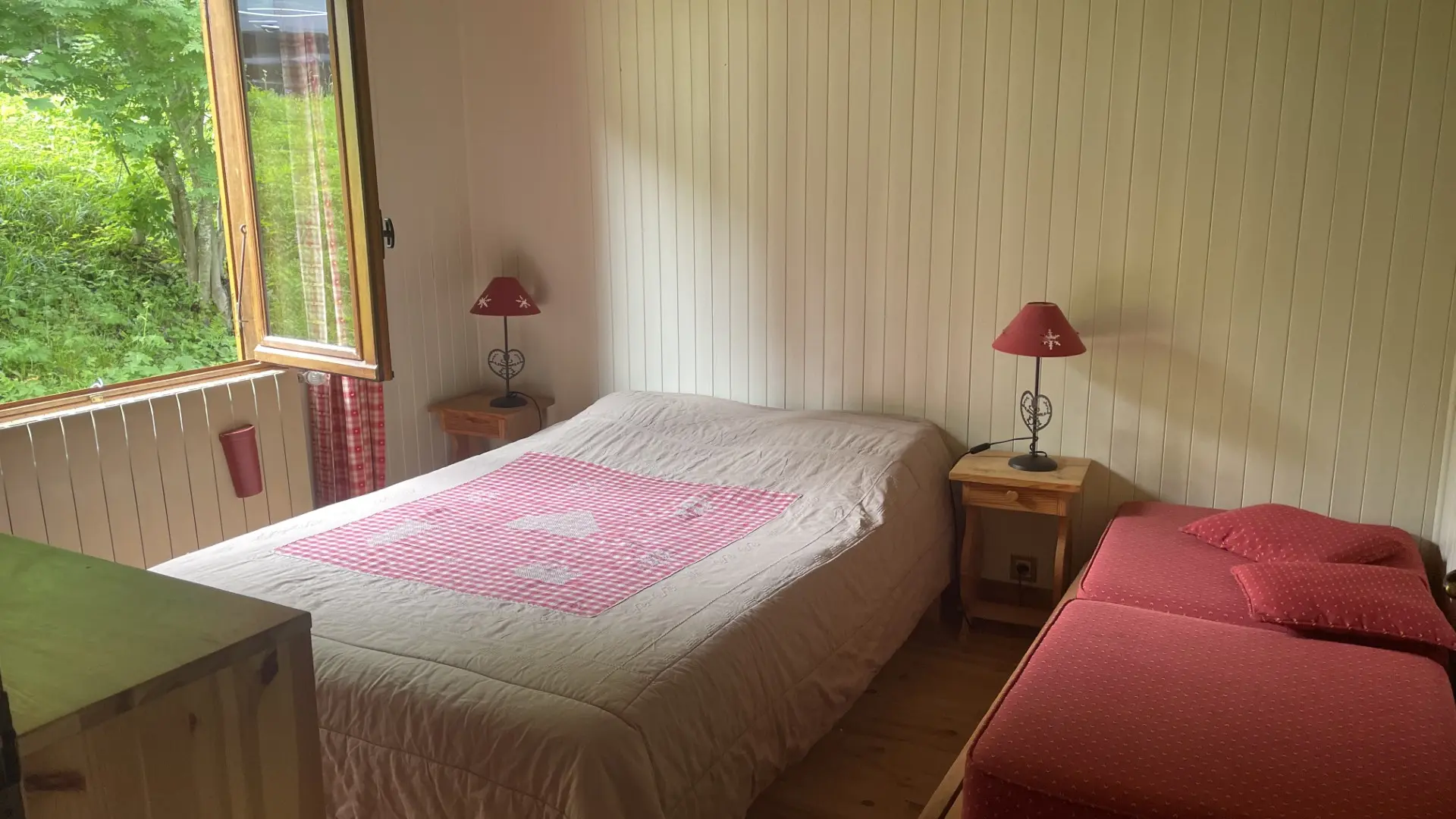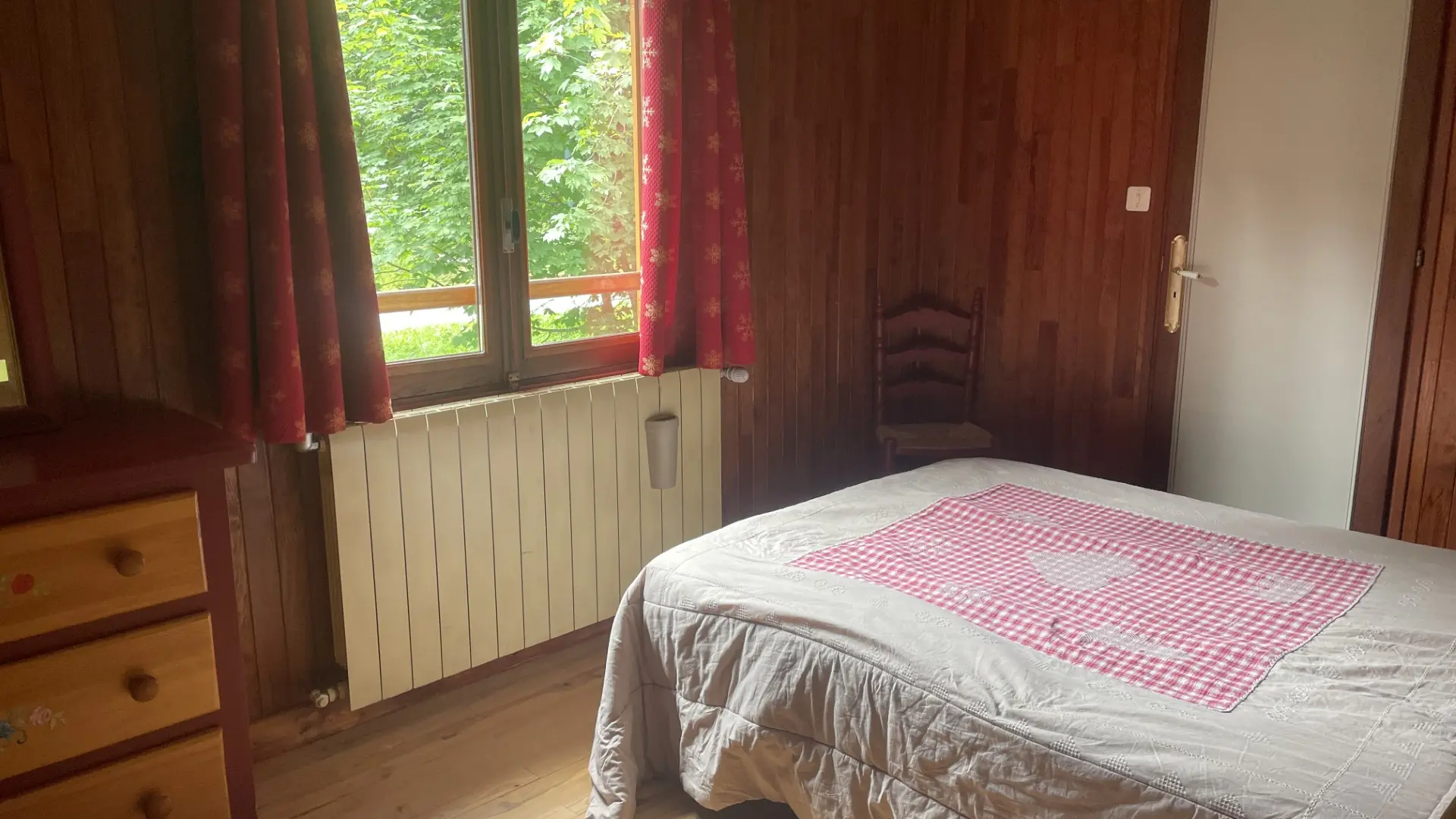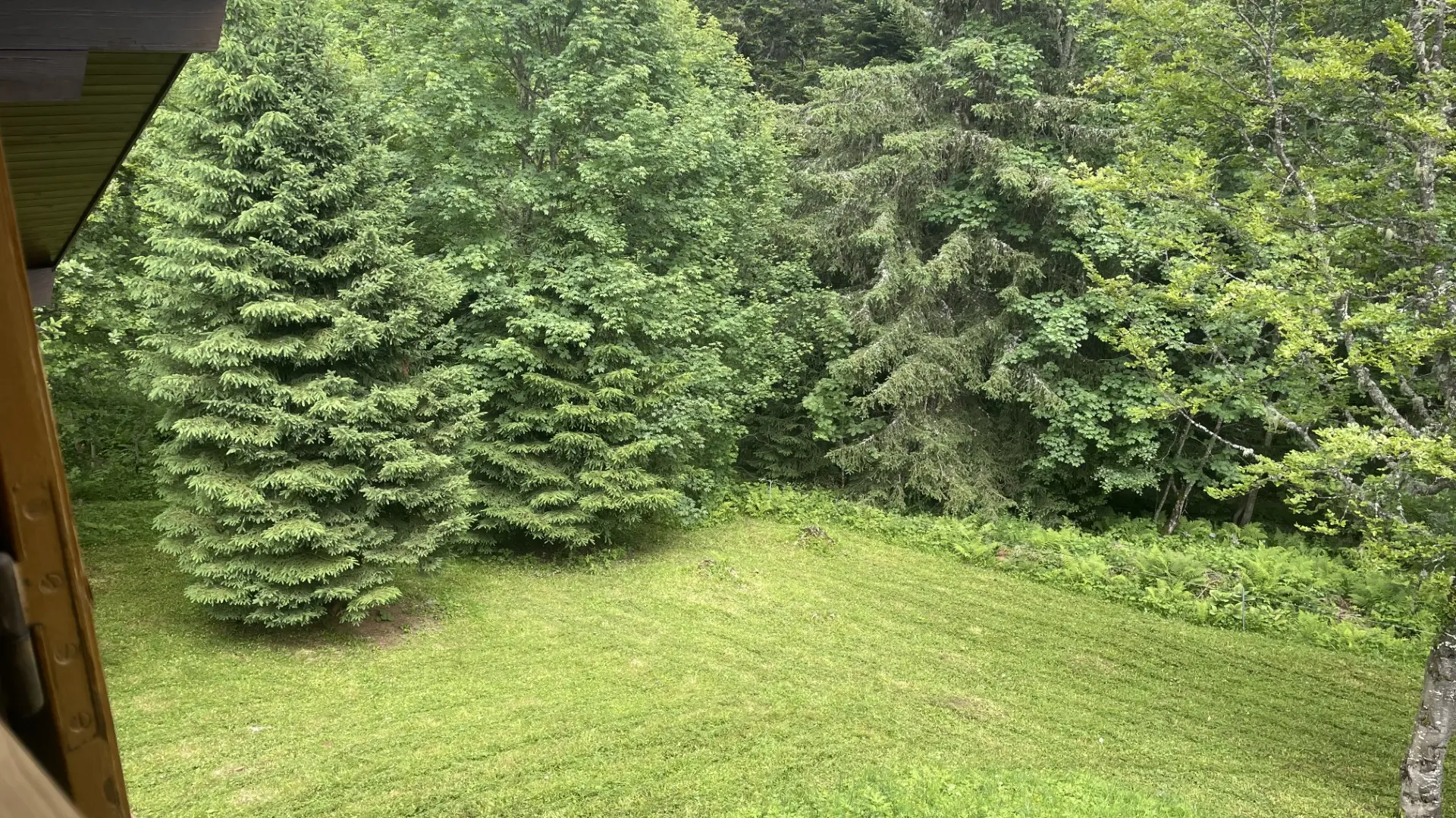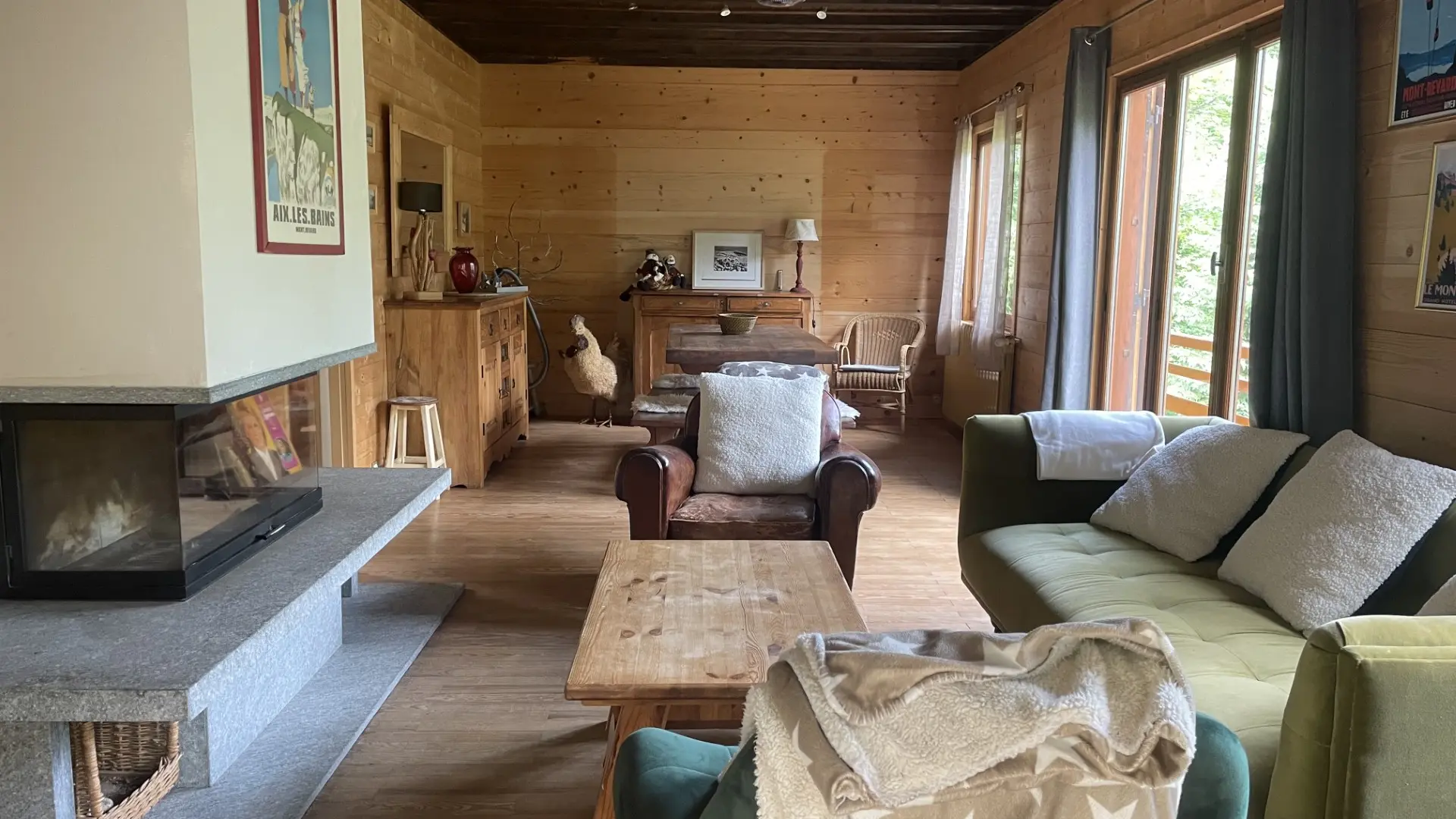 C'est un chalet de montagne traditionnel tout en bois, dans un écrin de 1350m2 de conifères où il n'est pas rare de croiser des chevreuils.