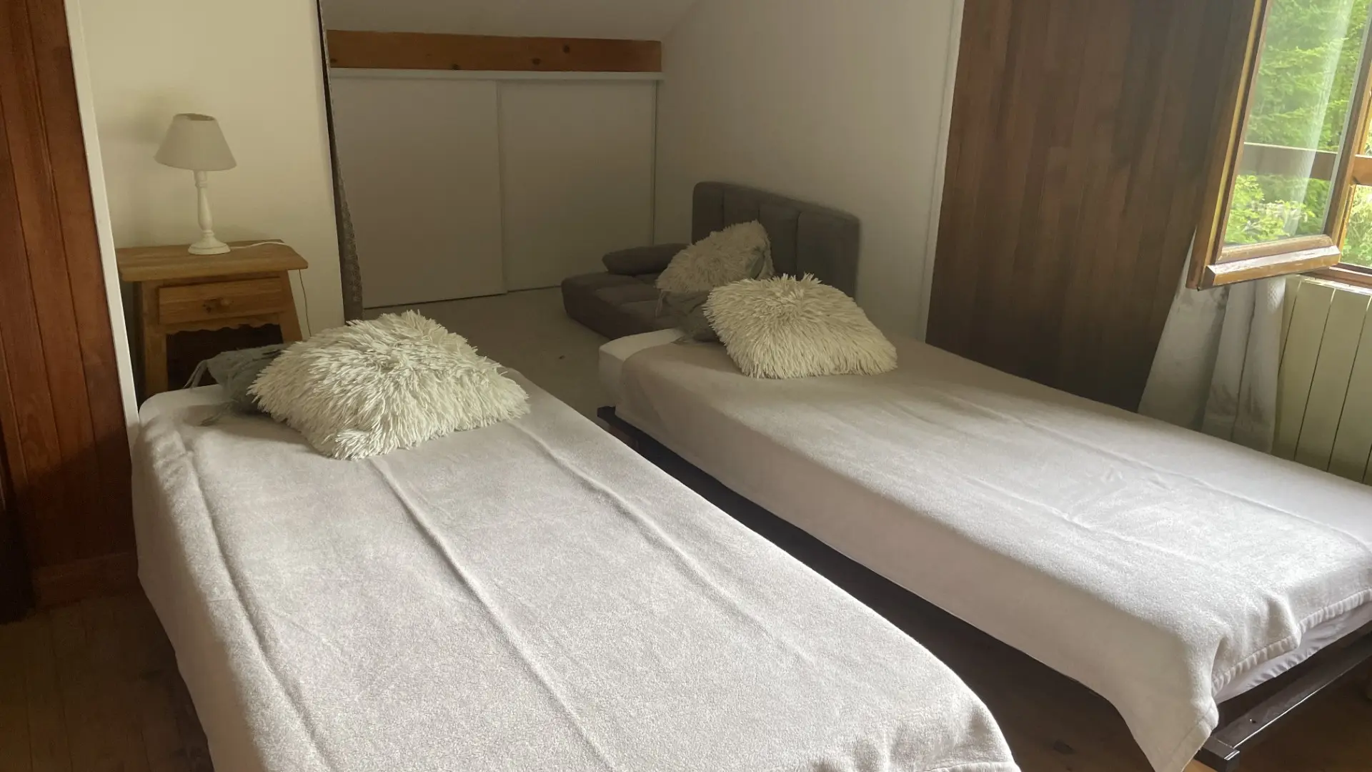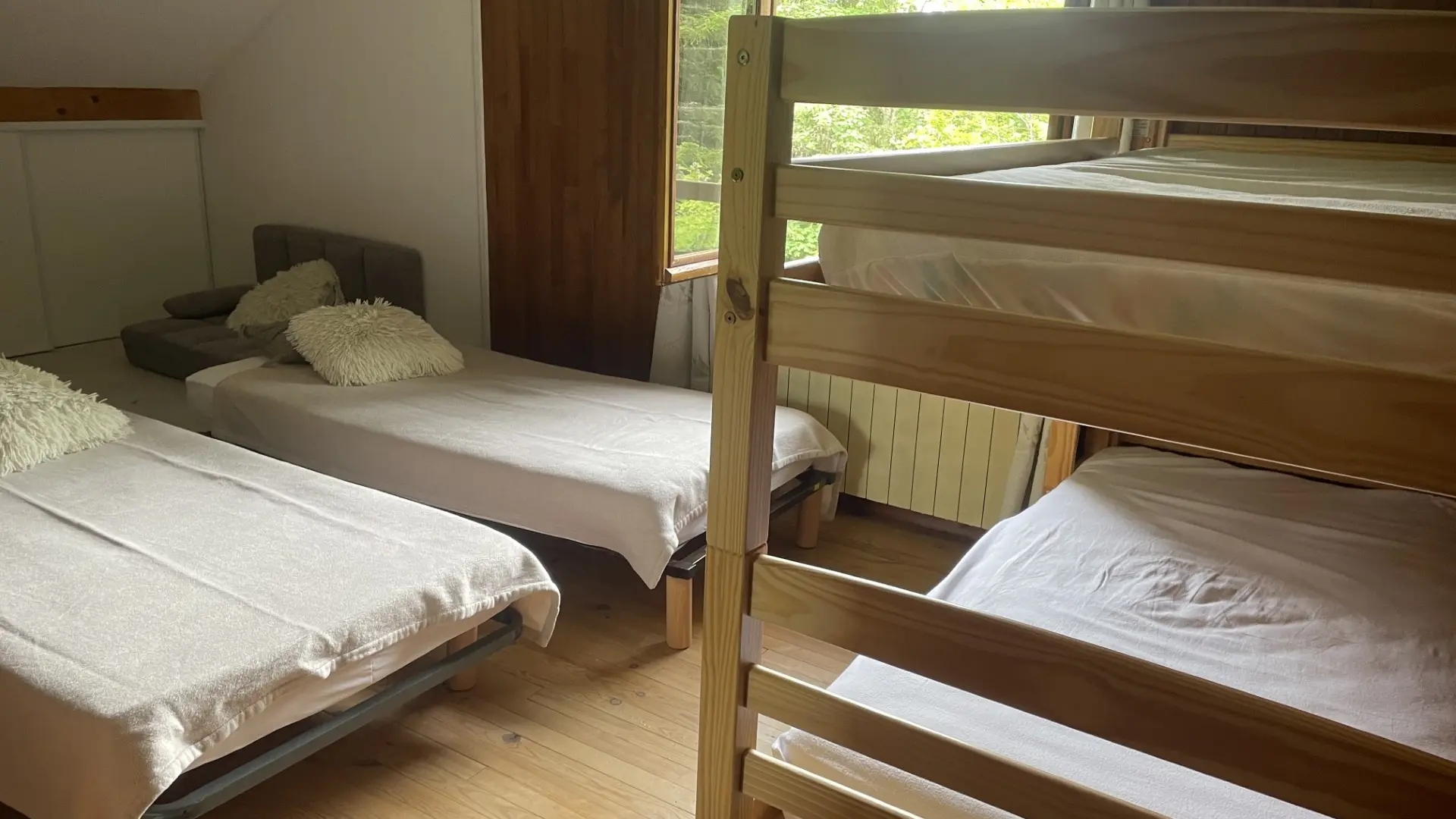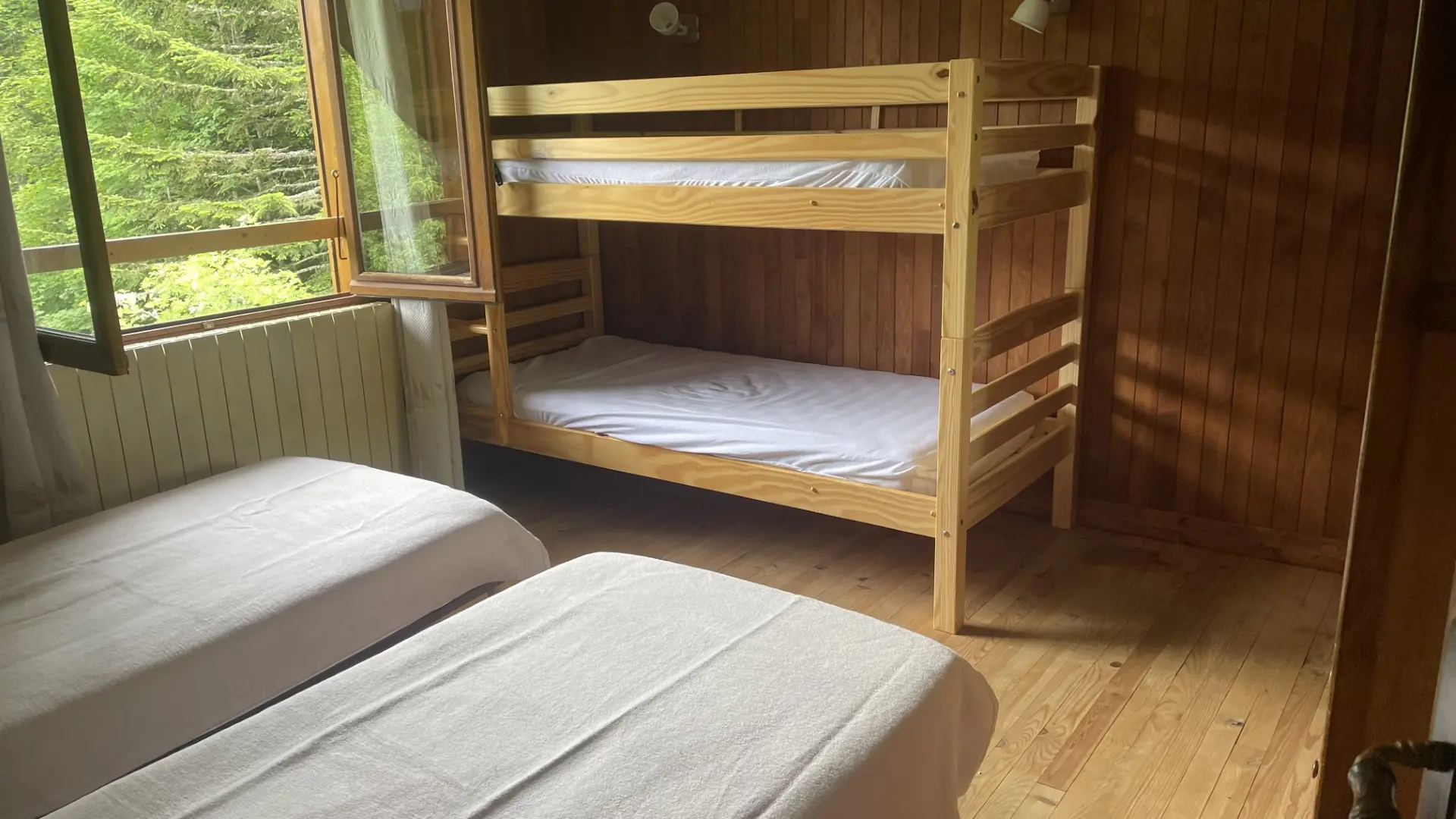 Il dispose de 4 chambres au total : 2 chambres avec lit double, 1 chambre de 4 lits simples (2 lits superposés et 2 simples pouvant être réunis), 1 chambre avec un lit double.
