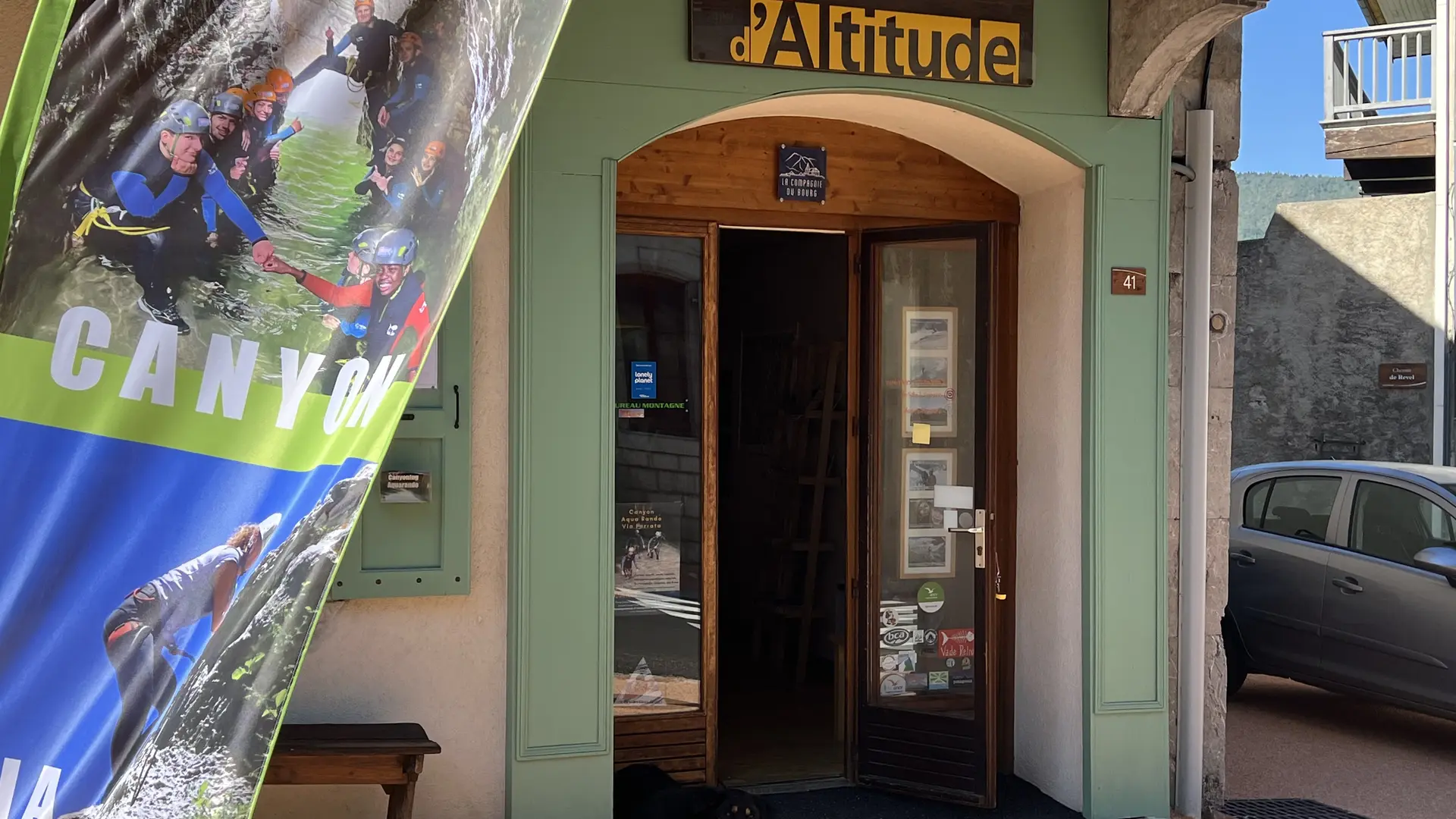 C'est dans une ancienne maison de village que les soeurs Mouchet vous accueillent. Sous le vieux quartier de l’église, cette grande bâtisse donne sur une petite place piétonne avec banc et bassin.