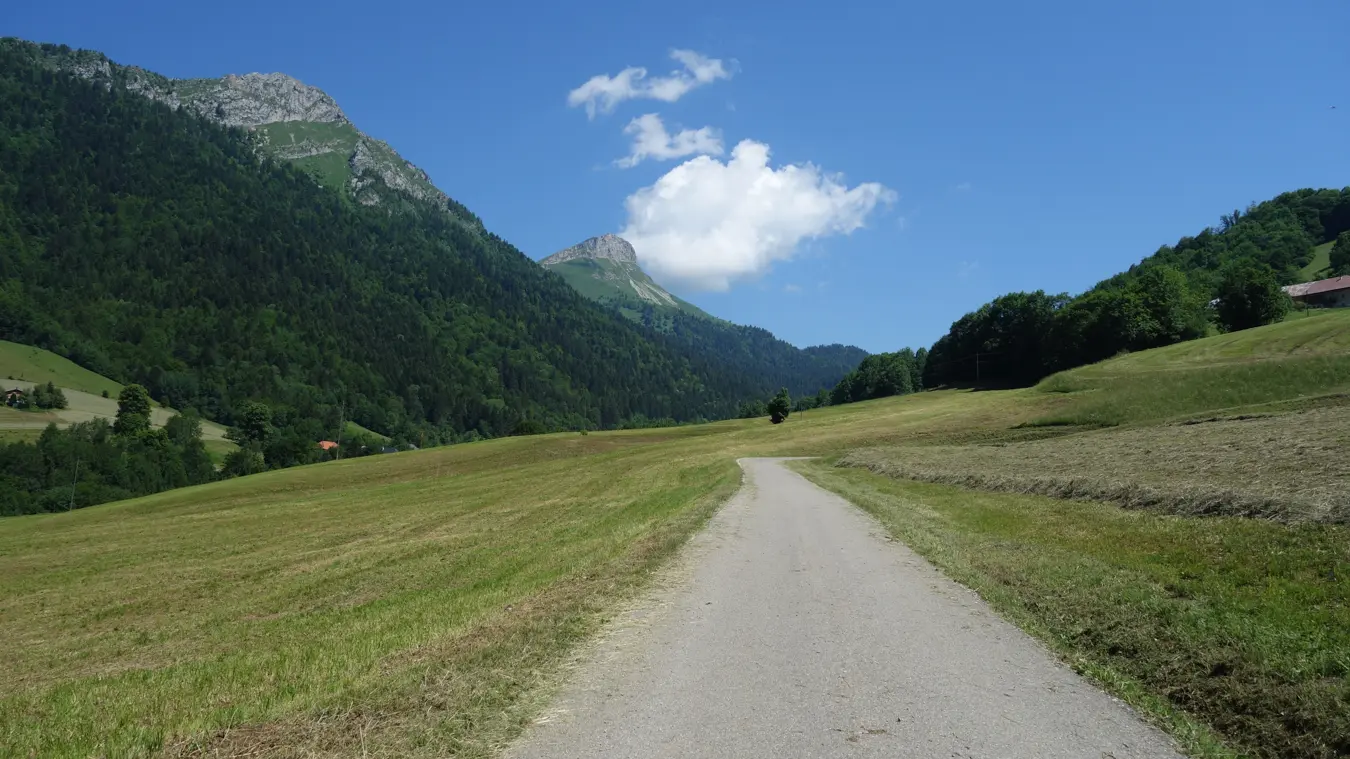 Au col de la Sciaz, bifurquer à droite en direction d'Aillons pour rejoindre par un large chemin assez pentu mais peu accidenté, la ferme du Morbié, grosse bâtisse au toit de tôle ondulée. Ici continuer de descendre la piste et, après une belle épingle à gauche, à "sous morbié", continuer tout droit (pas de balisage). La piste large en gravillons se poursuit par une route goudronnée menant au parking du Lindar, puis au col du même nom.