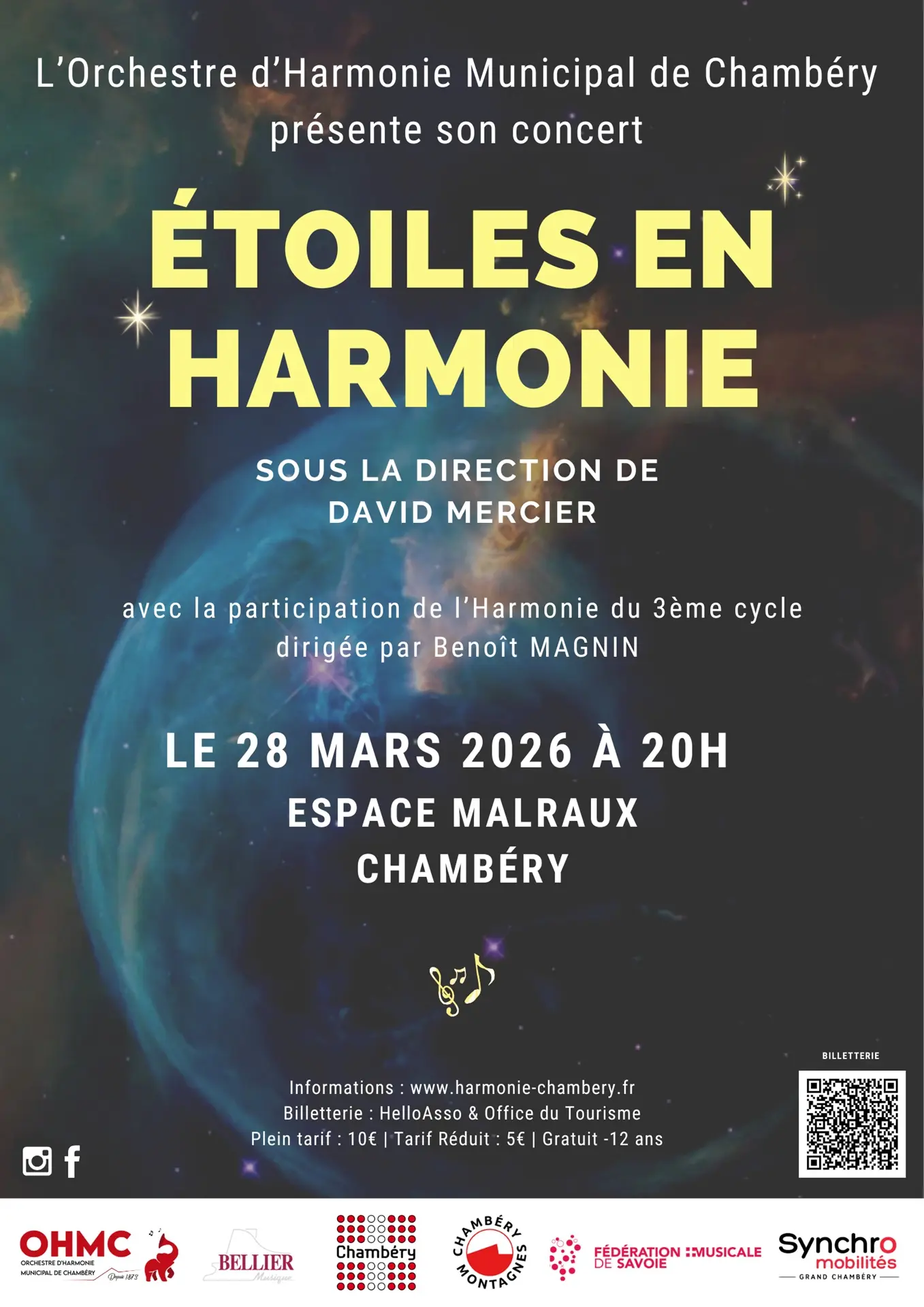 Plein tarif : 10 € / Réduit : 5 € / Gratuit pour les moins de 12 ans (billetterie physique en amont du concert à l'Office du Tourisme de Chambéry)