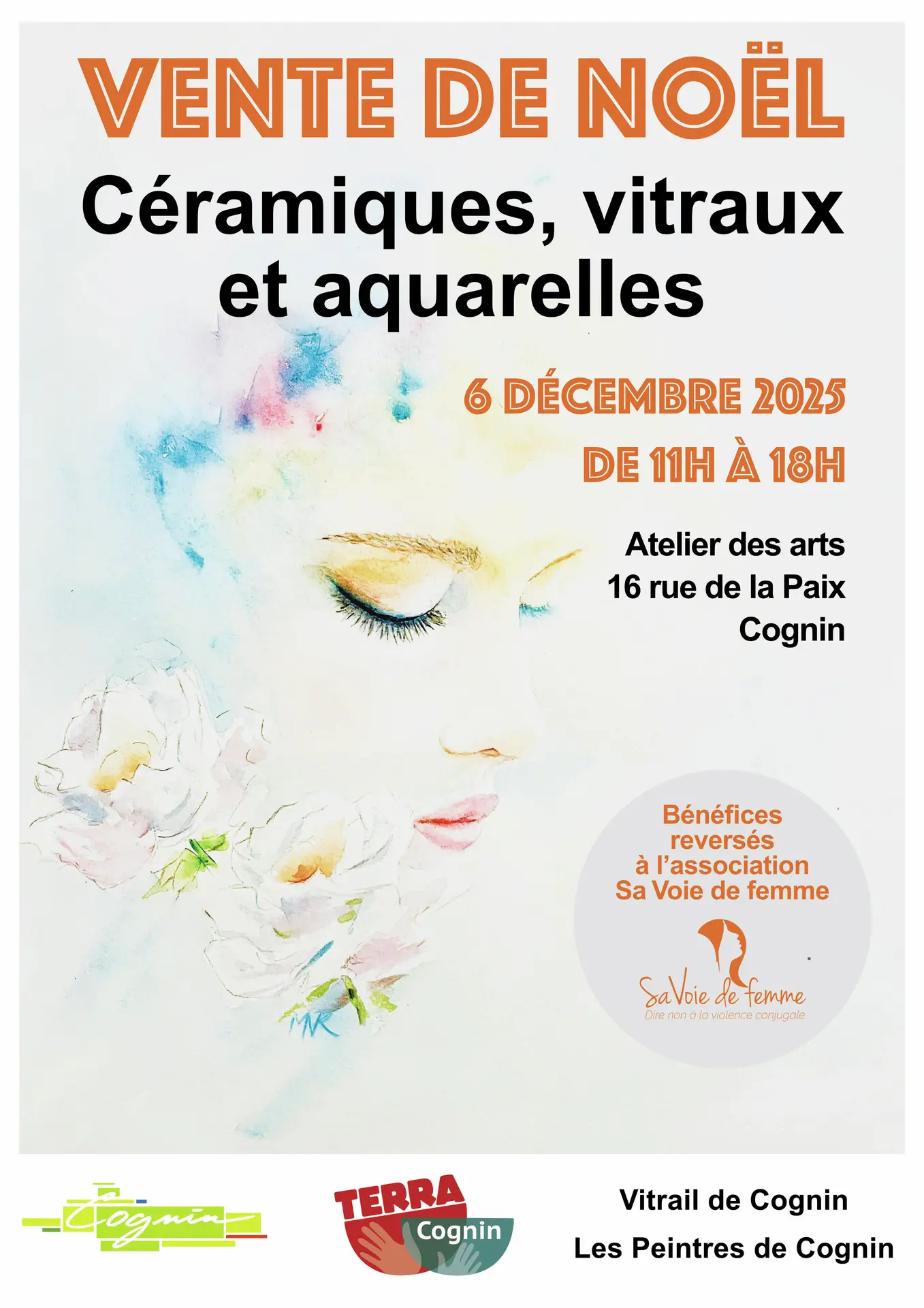 Céramiques colorées, Vitaux lumineux et aquarelles pastelles vendues au profit de l'association chambérienne Savoie de femme qui aide les femmes victimes de violences conjugales.
