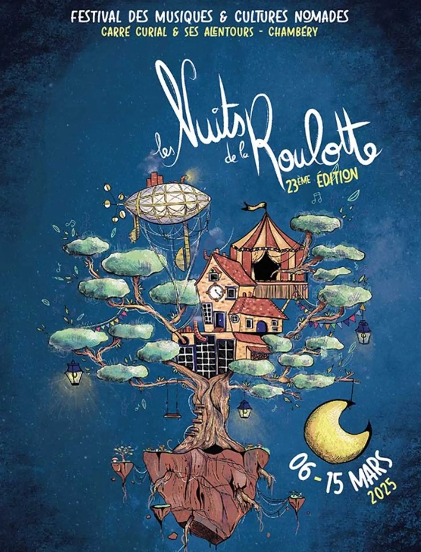 Embarquez à bord de ce vaisseau à l’allure peu conventionnelle, osez grimper dans cet arbre aux mille et une facettes, venez vous réfugier dans son doux et scintillant feuillage et laissez vous porter par l’équipe des Nuits de la Roulotte à la barre !