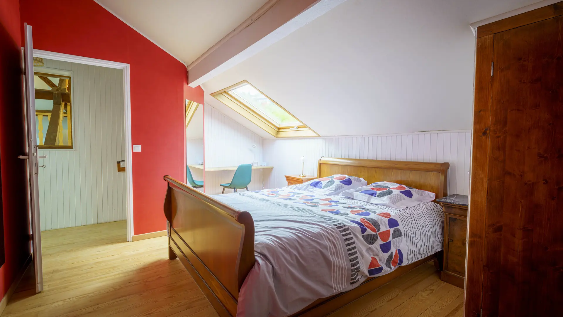 Un bureau dans la chambre avec prises (USB + secteur) et lampe vous permettra de télétravailler en toute tranquillité tout en disposant d'une connexion Wifi à haut débit.