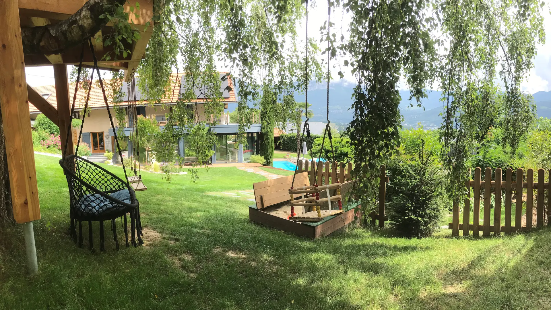 Les enfants auront accès à une aire de jeux extérieur (cabane, balançoires, toboggans, bac à sable, mur d'escalade et trampoline), partagée avec les hôtes, selon des plages horaires à convenir.