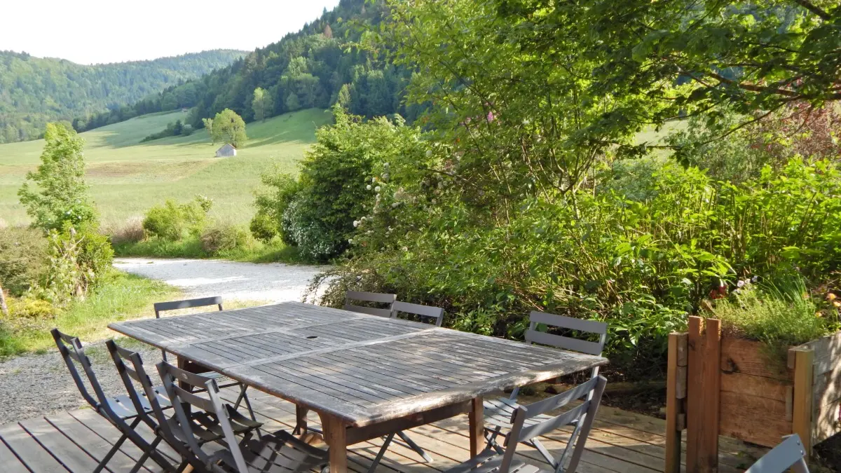 Au cœur du Parc Naturel du Massif des Bauges, vous apprécierez le calme et profiterez de nombreuses activités de pleine nature, été comme hiver. Séjour cuisine, 3 chambres, 8 lits 1 personne, 1 salle d'eau, 1 salle d'eau avec WC et 1 WC indépendant. Équipé de lave-vaisselle, lave-linge commun, télévision écran plat, TNT Sat, wifi et câble, poêle à bois, terrasse privative avec salon de jardin, jardin commun, parking privé.