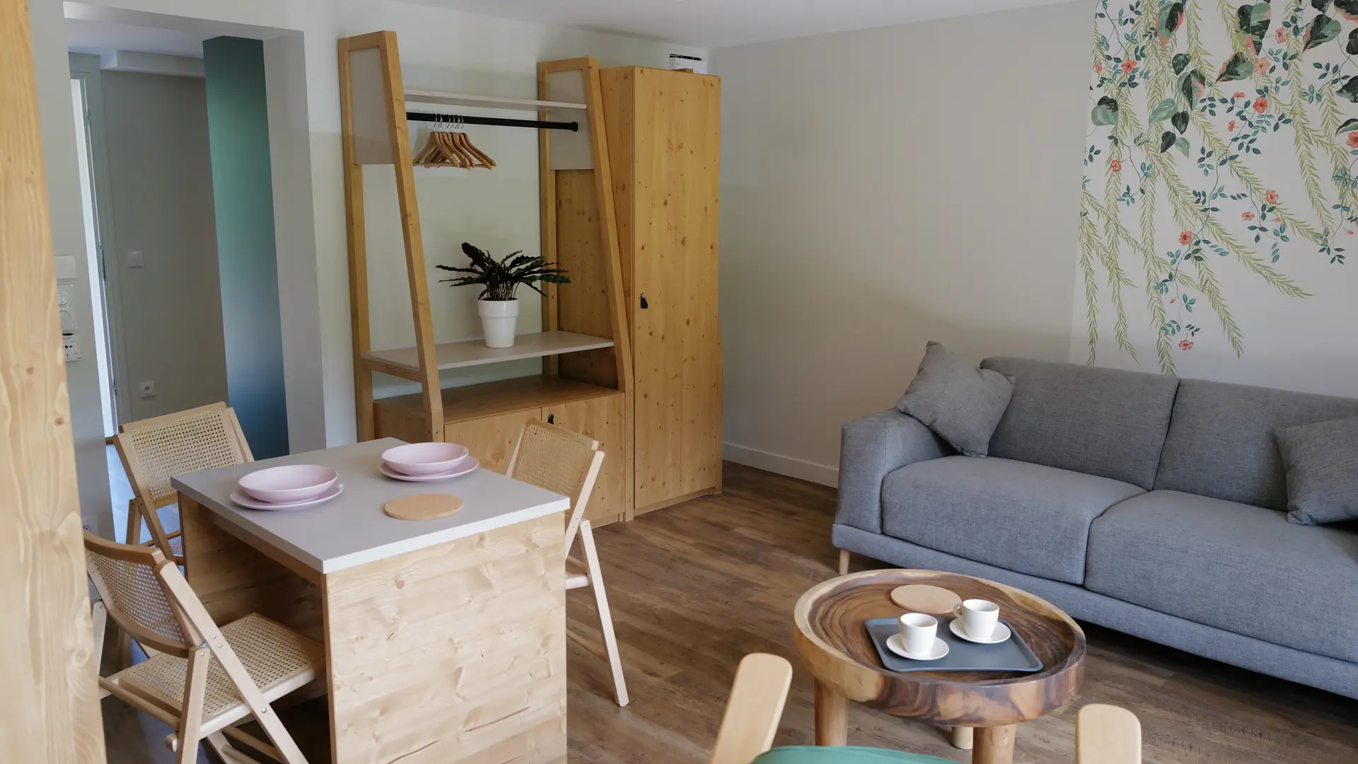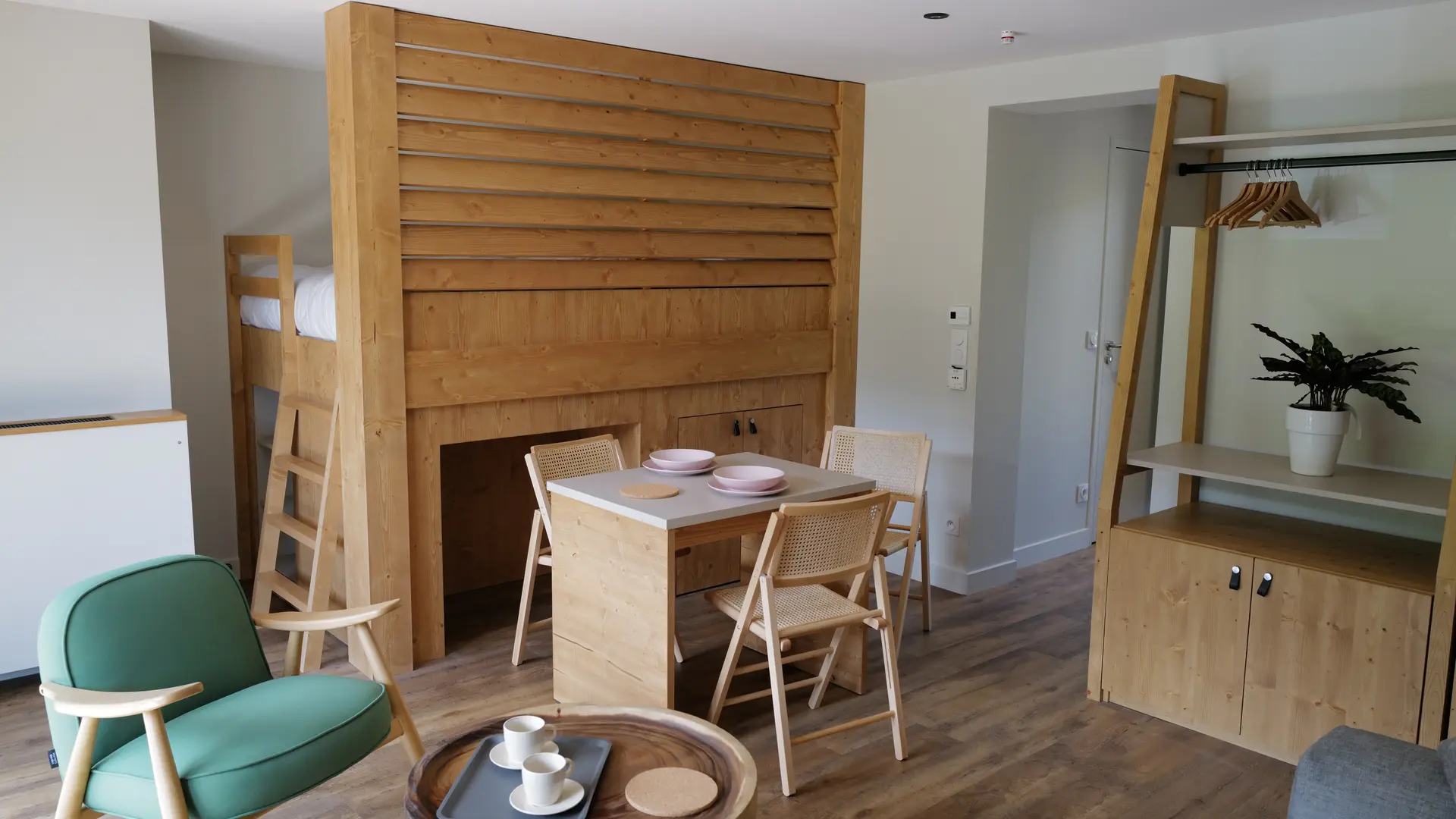 Studio de 4 personnes de 33m². Décoré et meublé dans le respect des codes du style hygge. Atmosphère intime et chaleureuse.