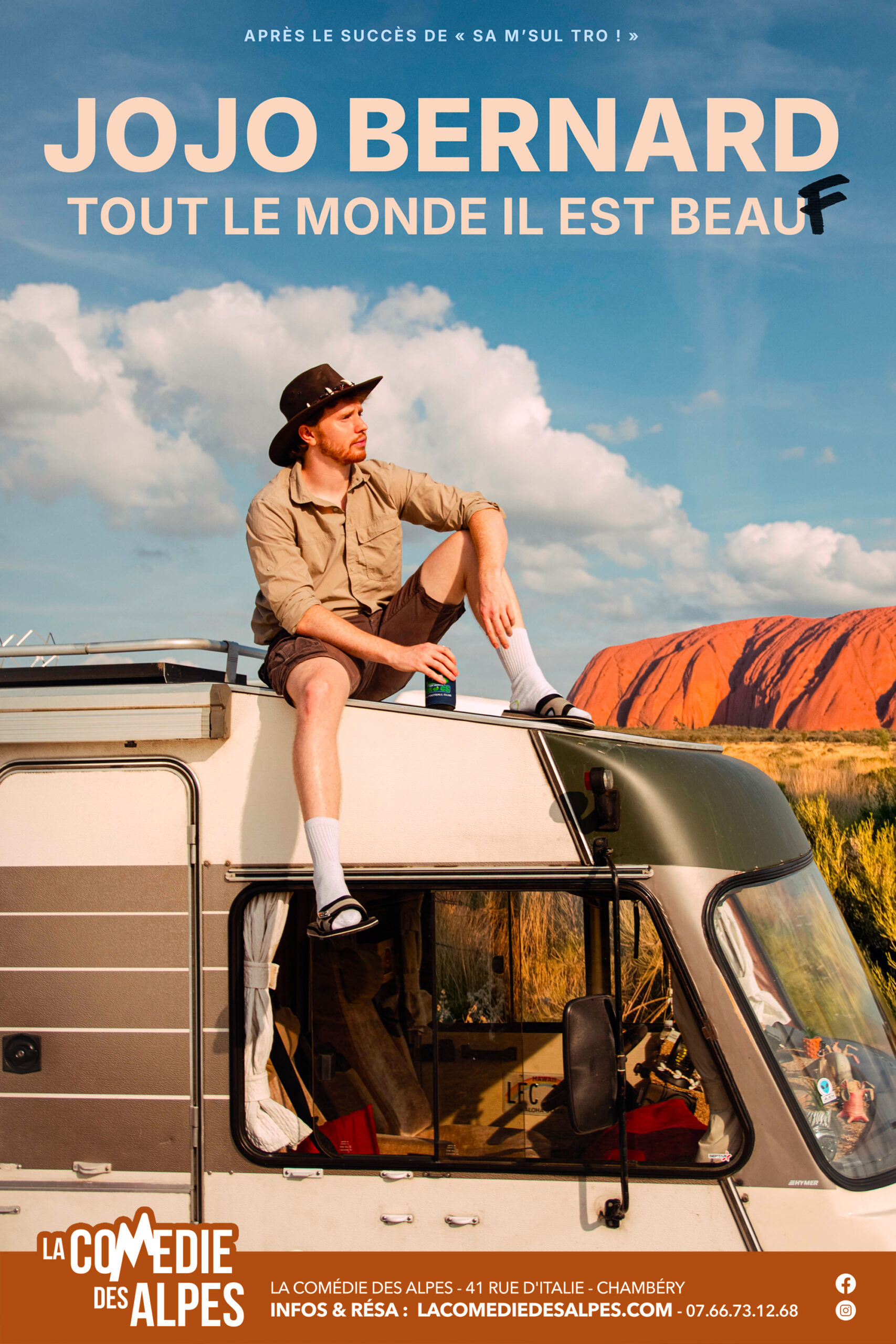 Après une tournée nationale à succès dans Sa M’Sul Tro !!, l'humoriste Jojo Bernard revient sur scène dans un nouveau one-man sur le thème du voyage.