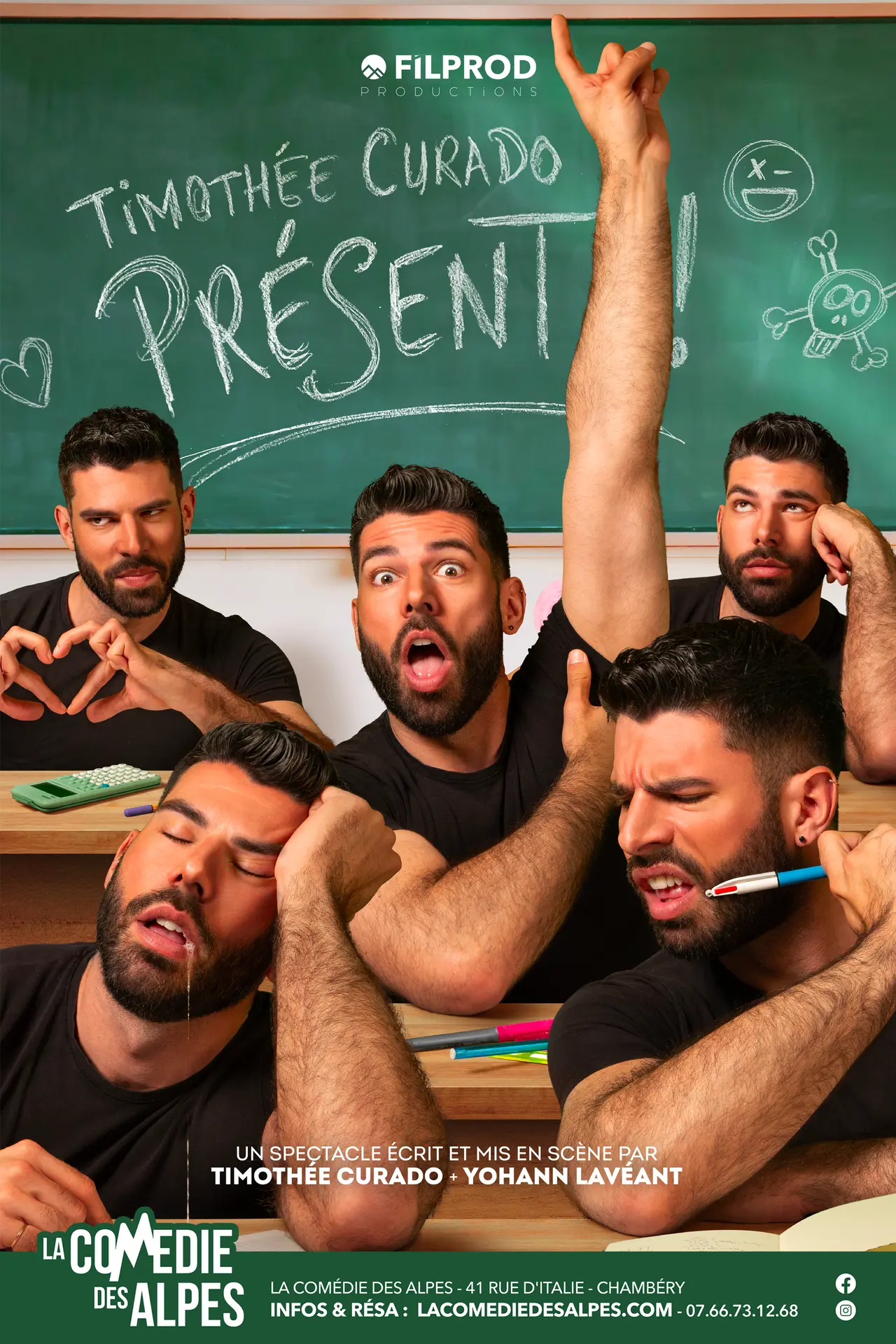 Tim Curado, après la parution de son livre « Perles de profs » et son succès sur les réseaux sociaux où il est suivi par 1,9 million de personnes, est enfin présent sur scène ! Un spectacle dynamique et bienveillant pour s’amuser des idées reçues sur le monde de l’éducation, la place des élèves, de leurs parents et des profs !