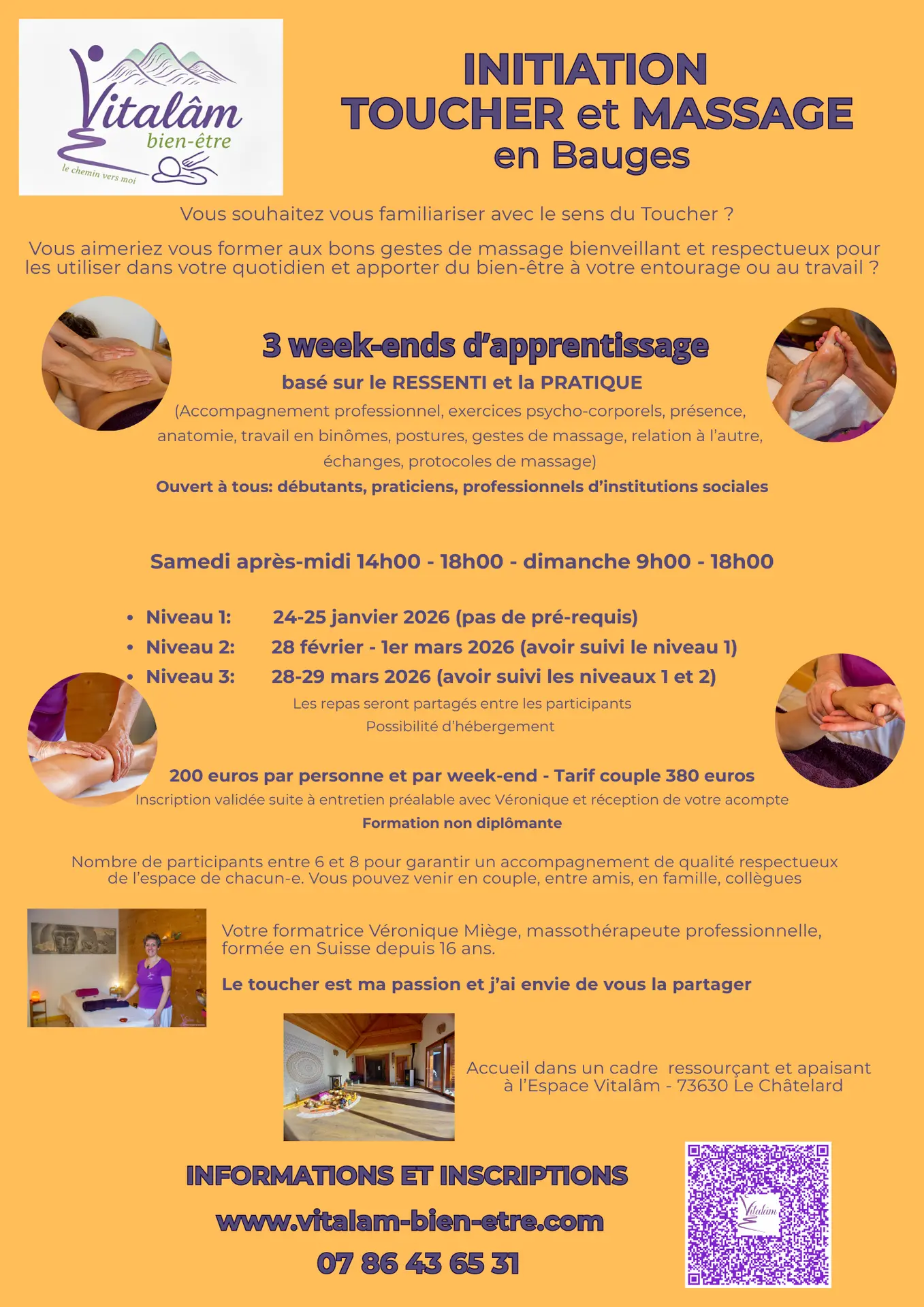 Je vous invite à venir vous initier au toucher et au massage 3 week-ends, dans un havre de paix et de ressourcement dans les Bauges. Je suis professionnelle du massage et vous transmettrait mon expertise pour vous en servir chez vous ou au travail.
