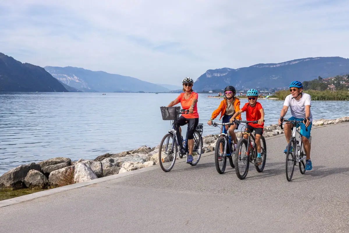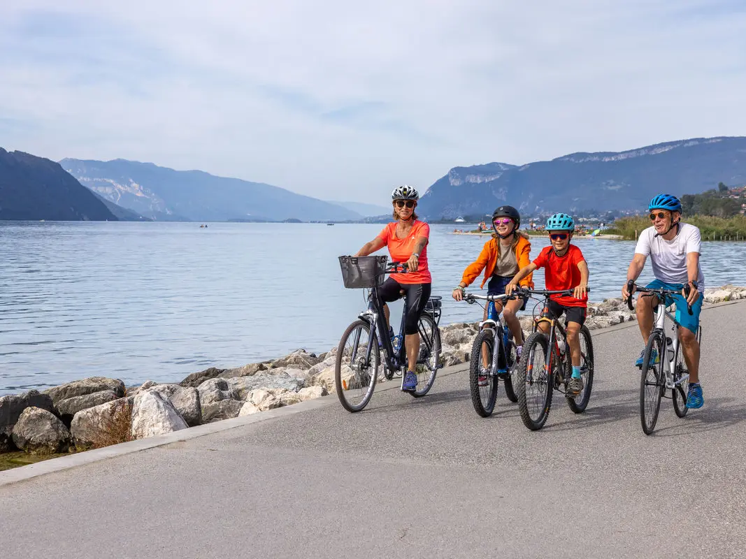 On peut débuter La Belle Via à Chanaz en Chautagne (en jonction avec ViaRhôna) par une croisière en bateau par le Canal de Savières et le lac du Bourget, pour rejoindre le Grand Port d’Aix-les-Bains Riviera des Alpes. En sortant son vélo du bateau, à partir du Grand Port, La Belle Via (V63) longe la promenade Lamartine en bord de lac, pour vos premiers tours de pédale. Très rapidement, vous empruntez la voie verte "Avenue Verte Nord " qui longe la rive du lac, avec en chemin, la possibilité de prévoir des haltes sur les plages ou dans les restaurants des villages qui le bordent. Au Bourget-du-Lac, la rive sud du lac est un espace naturel protégé, exceptionnel par sa biodiversité. Cette portion d'étape ne présente aucune difficulté avec un dénivelé d'environ 2%. On suit ensuite la rivière de l'Hyères, en direction de Chambéry. Depuis Chanaz ou Aix-les-Bains, il est possible d'embarquer avec son vélo pour profiter d’une croisière sur le lac du Bourget et au passage d’une visite de l’abbaye de Hautecombe. Une manière reposante et agréable de connecter la Belle Via à ViaRhôna.