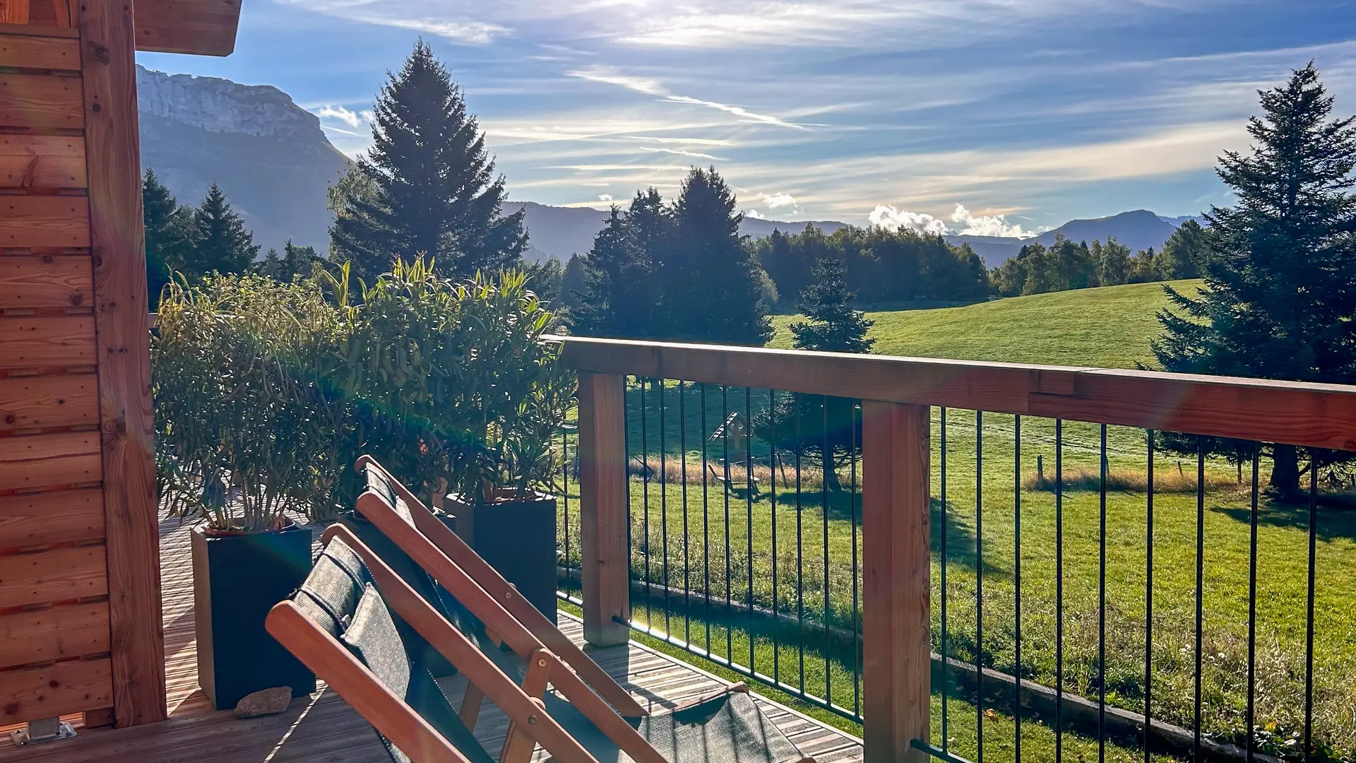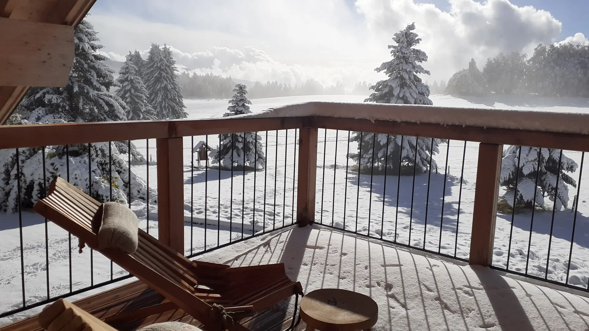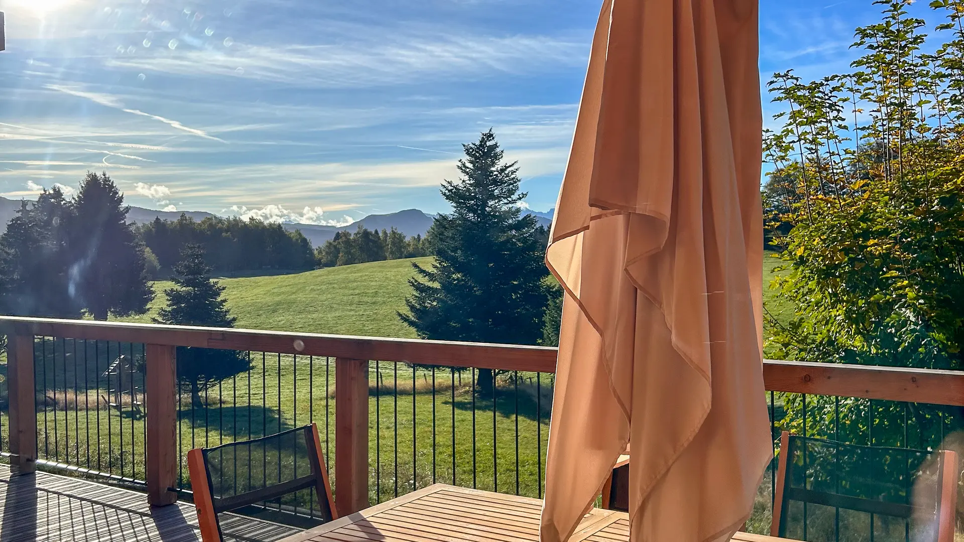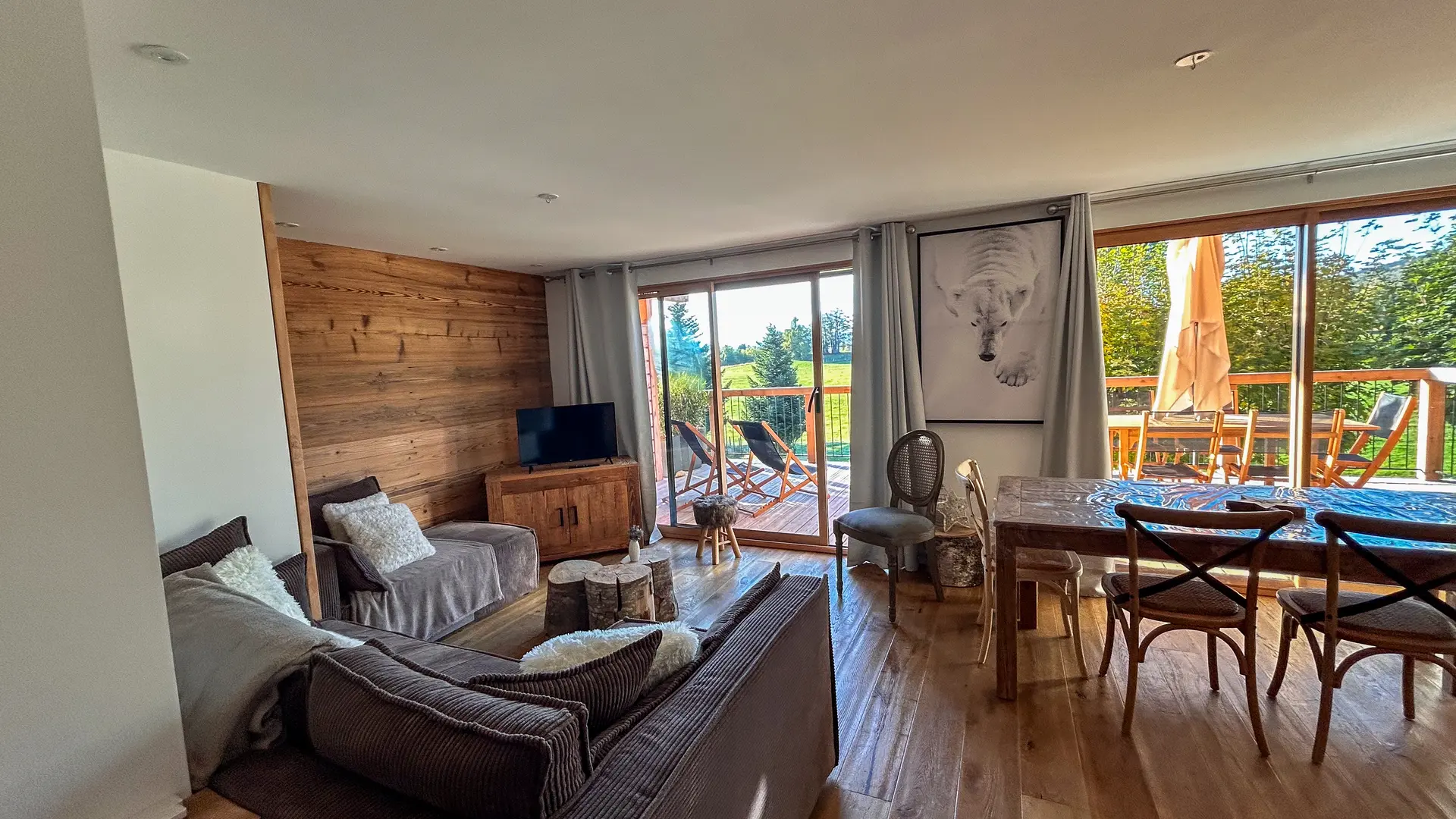 Les immenses baies vitrées de ce gîte de 65 M2 offrent une perspective unique sur le Plateau Sud que ce soit depuis son séjour ou sa terrasse couverte de 30 M2.