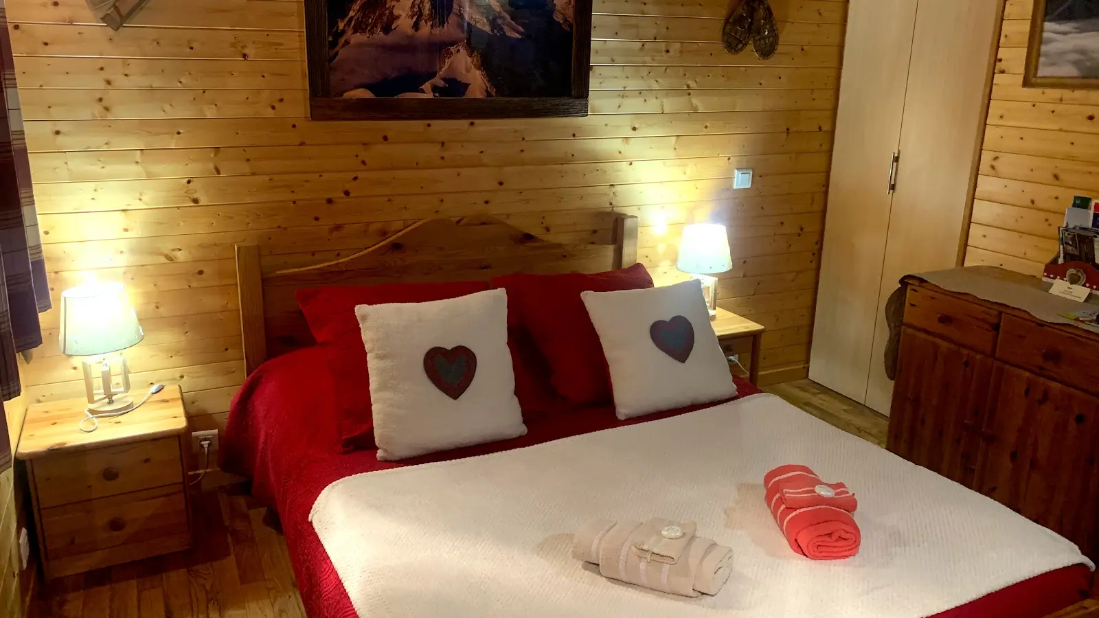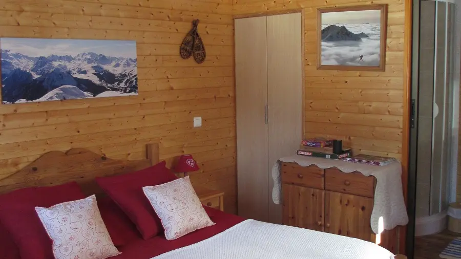 Dans un chaleureux chalet en rondin au pied des pistes au Revard, 3 chambres d’hôtes pour 10 personnes :