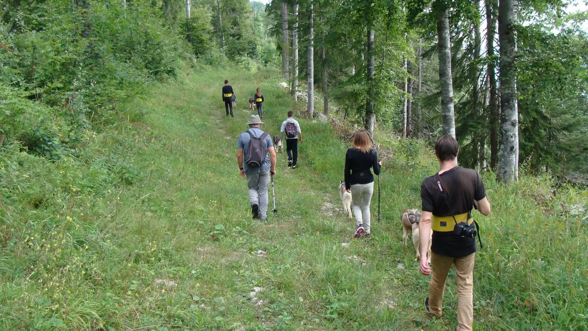 > Cani-rando : balade en forêt tractée chacun par un chien, adapté aux capacités de chacun au retour au chenil, approche et soins du chien, et une visite du chenil inclus.