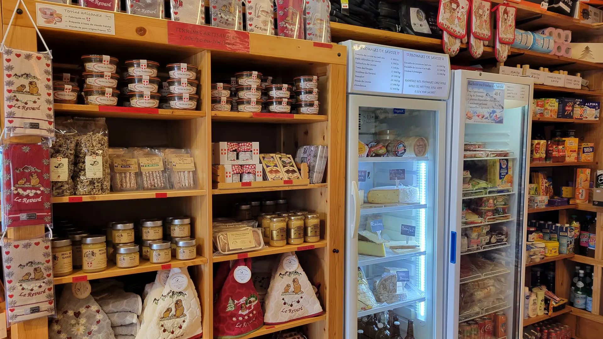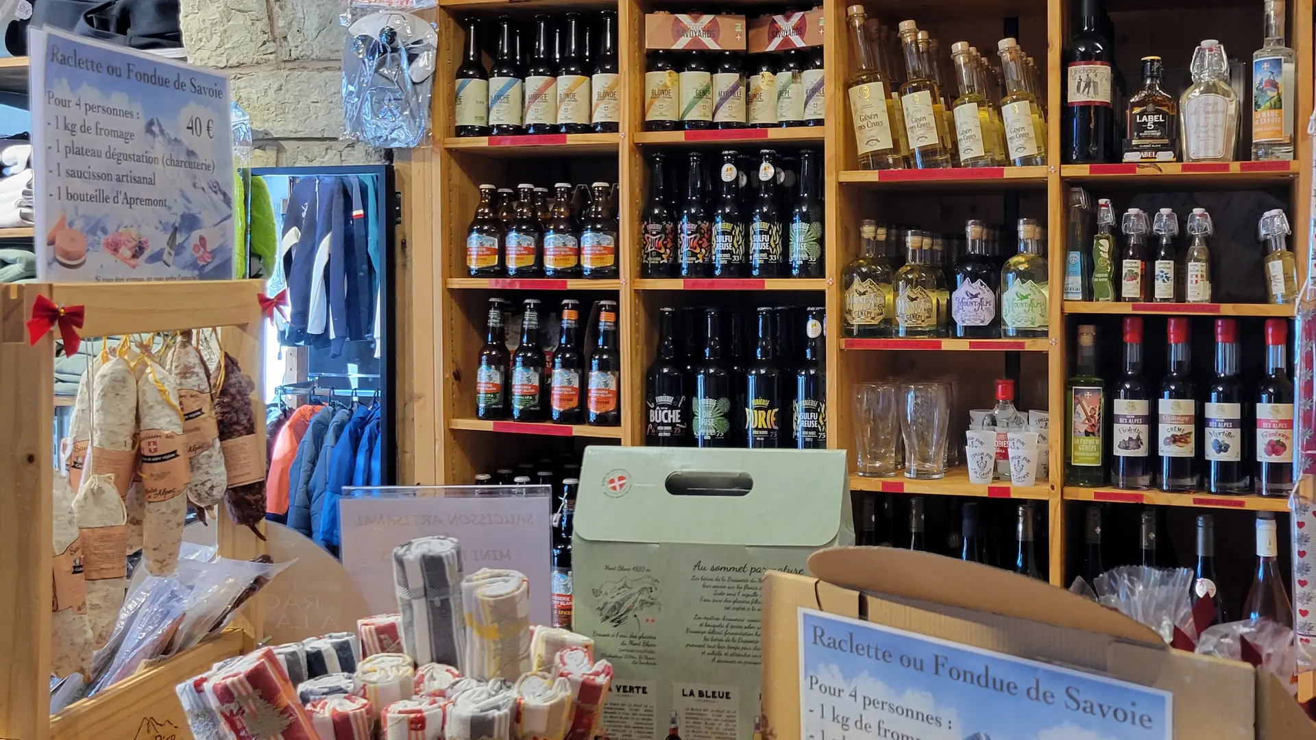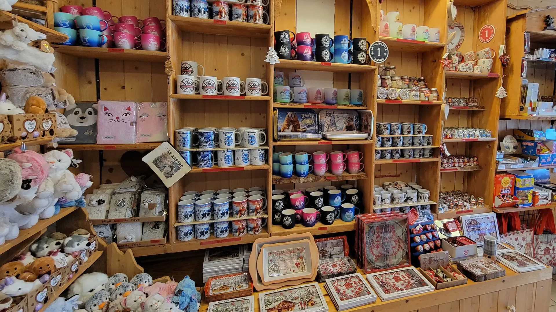 Souvenirs, cadeaux, alimentation, produits régionaux, pain sur commande, vêtements et accessoires.