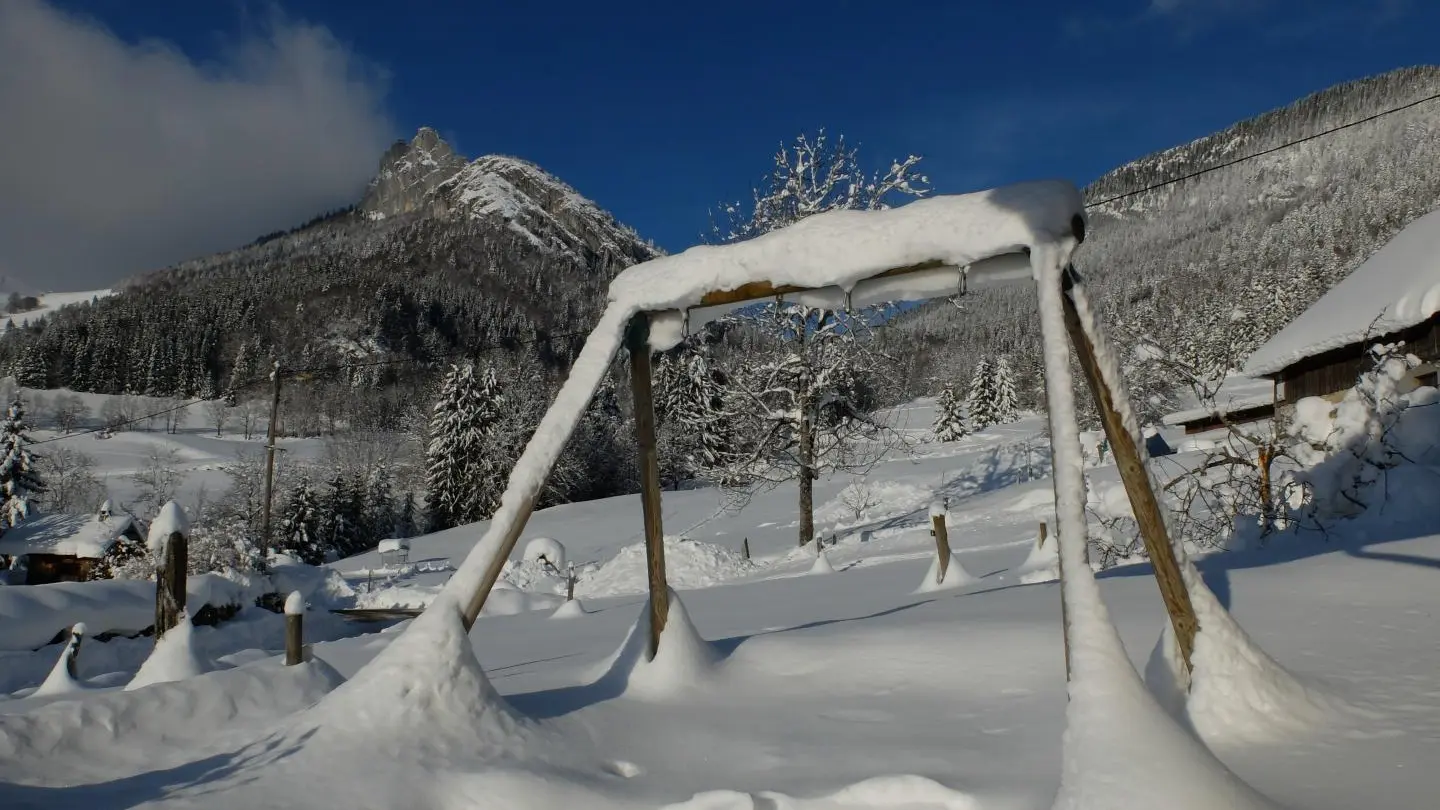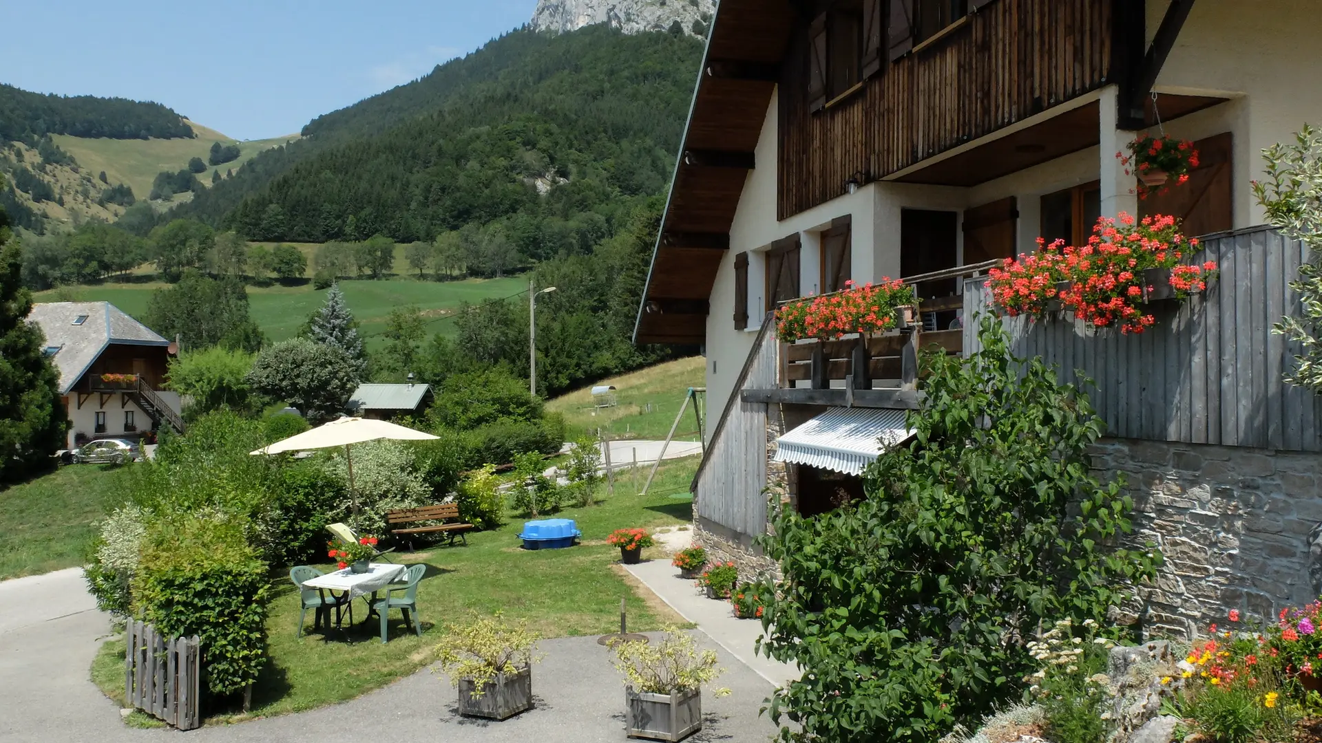 Maison ancienne rénovée située au coeur du Parc Naturel des Bauges, à la sortie du hameau, à flanc de coteau sud-ouest. Secteur calme et facile d'accès. Splendide vue dégagée sur la vallée et les montagnes. Spacieux et agréable. Très bon confort. Cachet montagne. Jardin agréablement aménagé.