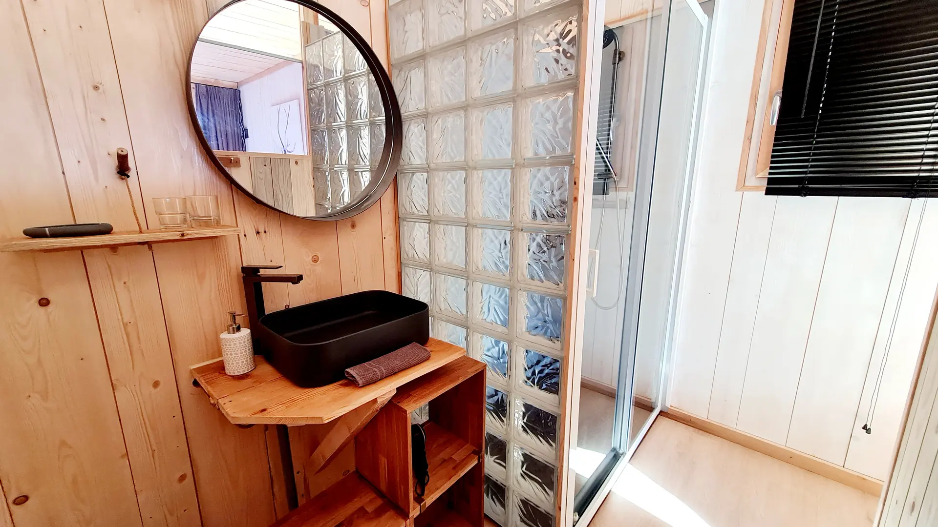 sauna gratuit uniquement sur la terrasse des lodges en autonomie au feu de bois