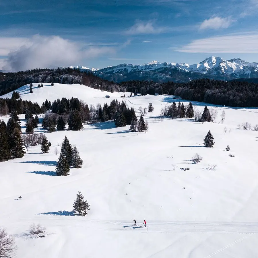 Face à l'arche de départ des pistes de ski de fond prenez à droite de la salle hors sac. Laissez-vous guider sur le sentier balisé de la "Tourbière" (Zone protégée Natura 2000). Possibilité de prolonger jusqu'à la "Croix des bergers" (+30mn) avant de retourner en forêt. Au panneau "Les Gouilles", retournez vers le foyer de ski de fond.
