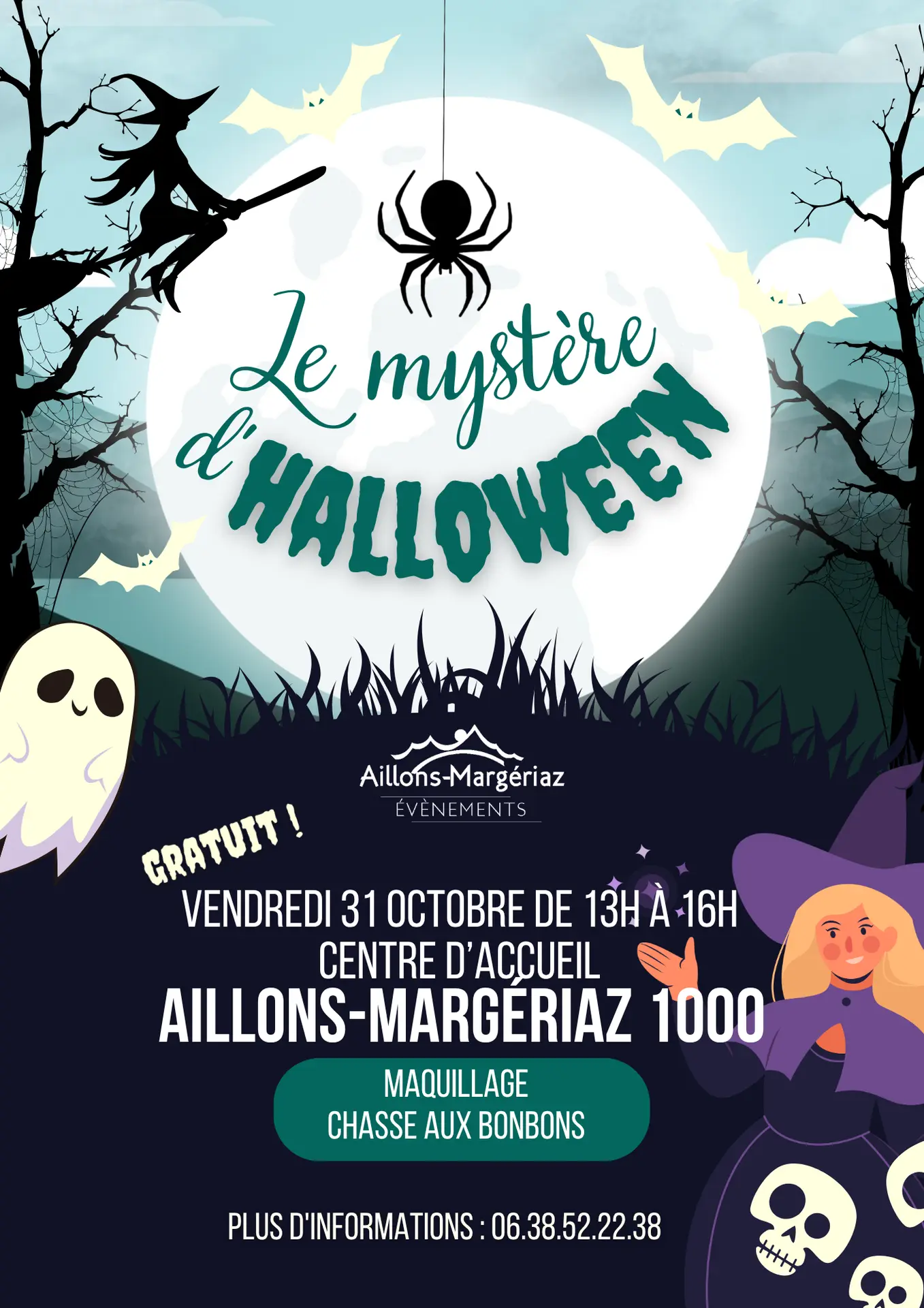 • Dès 13h00 : Enquête "Le mystère d'Halloween", résolvez les énigmes de notre sorcières bien aimée, des bonbons ou un sort à a clé ! (à partir de 6 ans)