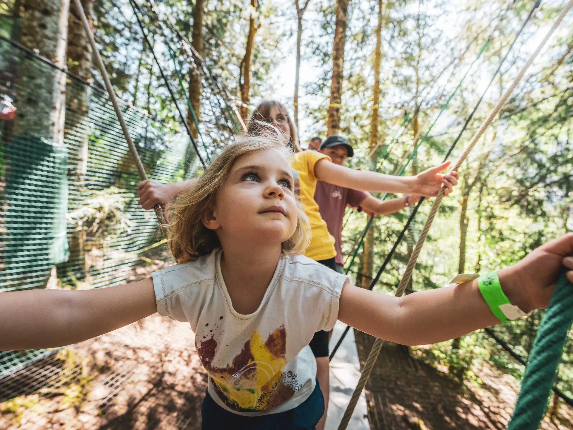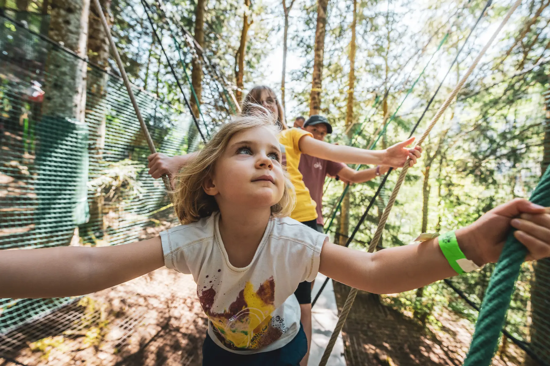 Le Pays suspendu des Géants est un univers aérien à la cime des arbres où l’on s’amuse en toute sécurité, sans baudrier, dans des filets géants, des cabanes, des toboggans et plein d’autres jeux !