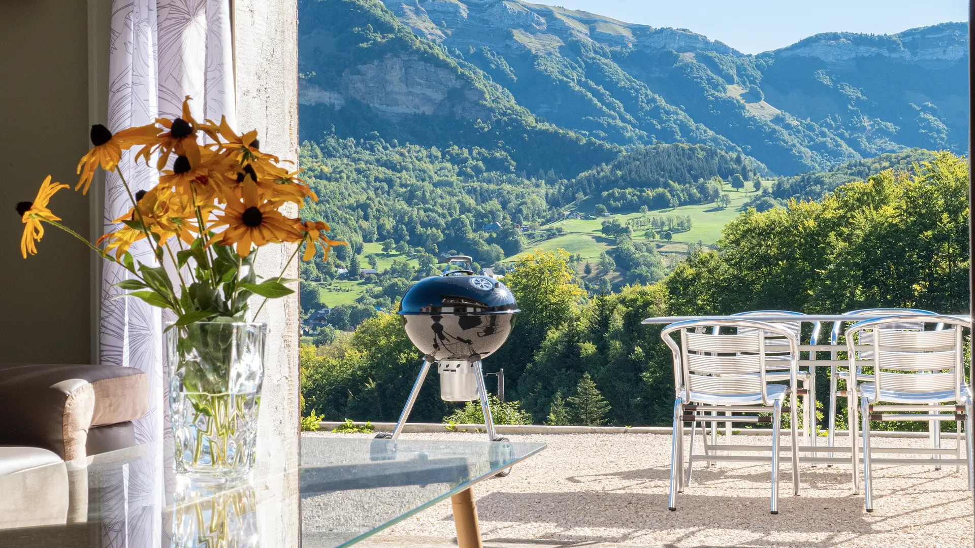 Détendez-vous sur votre grande terrasse privative, offrant une vue panoramique sur Le Margériaz, un cadre parfait pour admirer la nature environnante.
