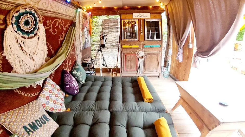 Une expérience immersive exceptionnelle avec les éléments. Que ce soit pour admirer un ciel étoilé, guetter une étoile filante, la danse des nuages, le spectacle d'un orage, ou simplement savourer le silence, l'expérience est immersive et unique. Vous êtes en sécurité, à l'abri, peu importe la météo.