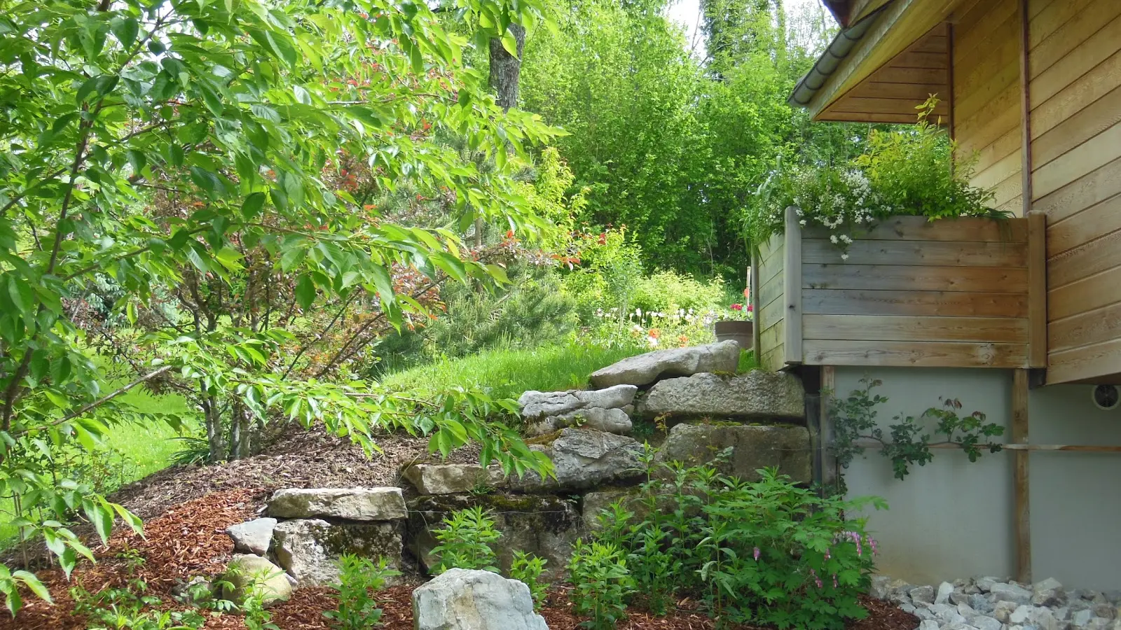 - sobriété : choix de construction en 2009 (isolation soignée, pompe à chaleur & poêle à bois, chauffe-eau solaire), régulation des consommations d'électricité et d'eau, arrosage très raisonné,