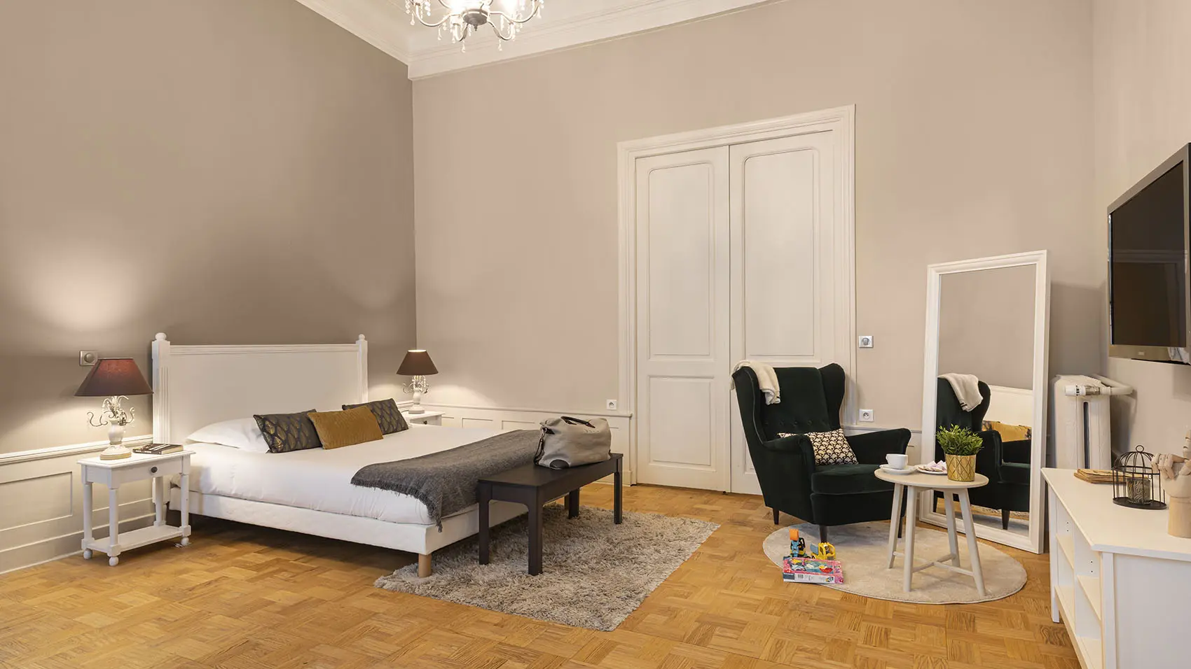 Nous vous vous accueillons dans un très bel Hôtel particulier du XVIIIe siècle. Situé dans une charmante rue piétonne à 2 pas de la Cathédrale, de la place Saint-Léger et du château des Ducs de Savoie, en plein cœur du secteur patrimonial.