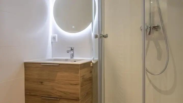 Rez-de-chaussée : une entrée, un séjour-cuisine avec poêle à bois, une buanderie/réserve, WC séparé avec lave-mains, une chambre (1 lit 2 personnes 160x200 cm) et une salle d'eau privative (douche et WC).