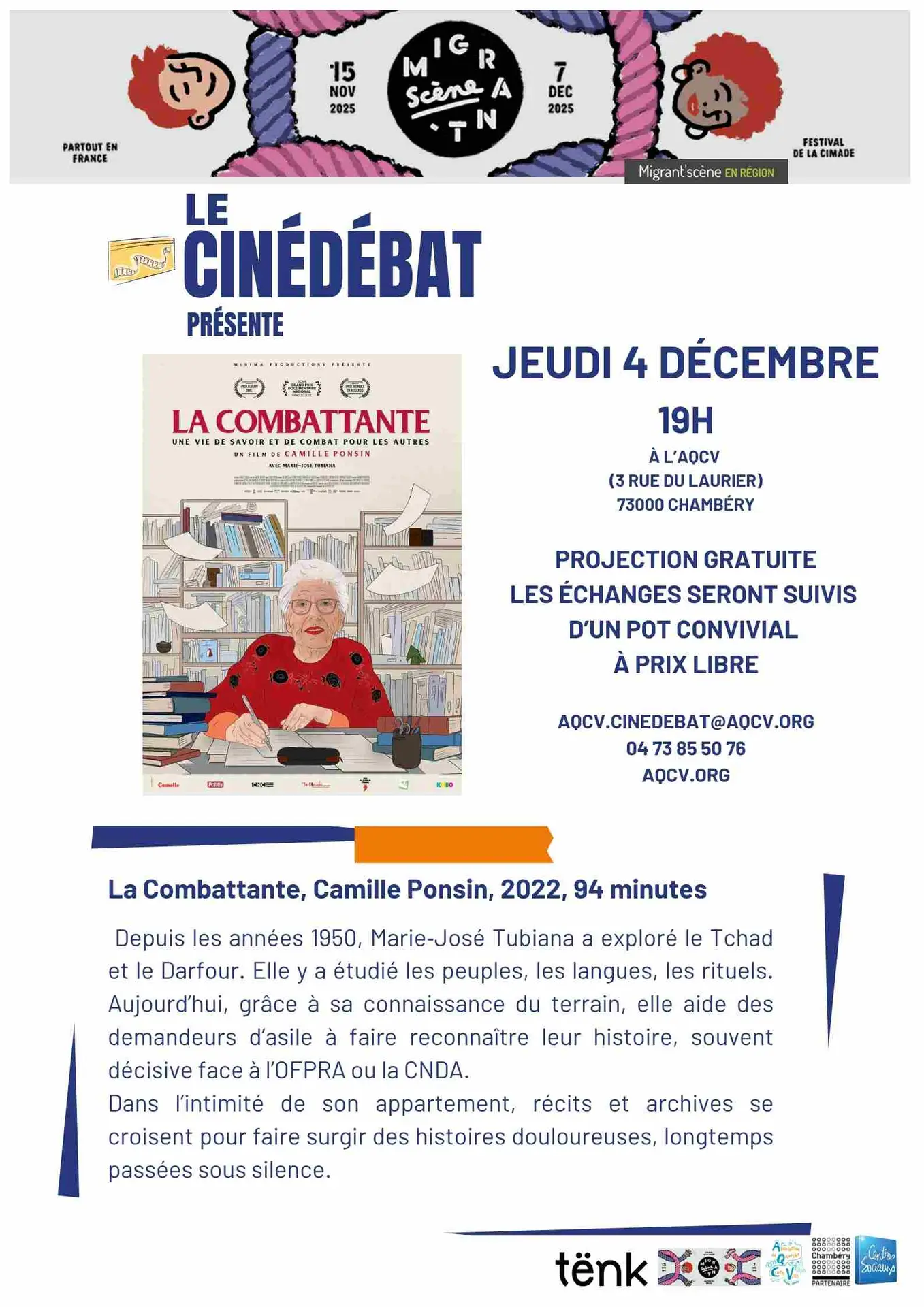 Projection gratuite de" la combattante" de Camille Ponsin. Les échanges seront suivis d'un pot convivial à prix libre.