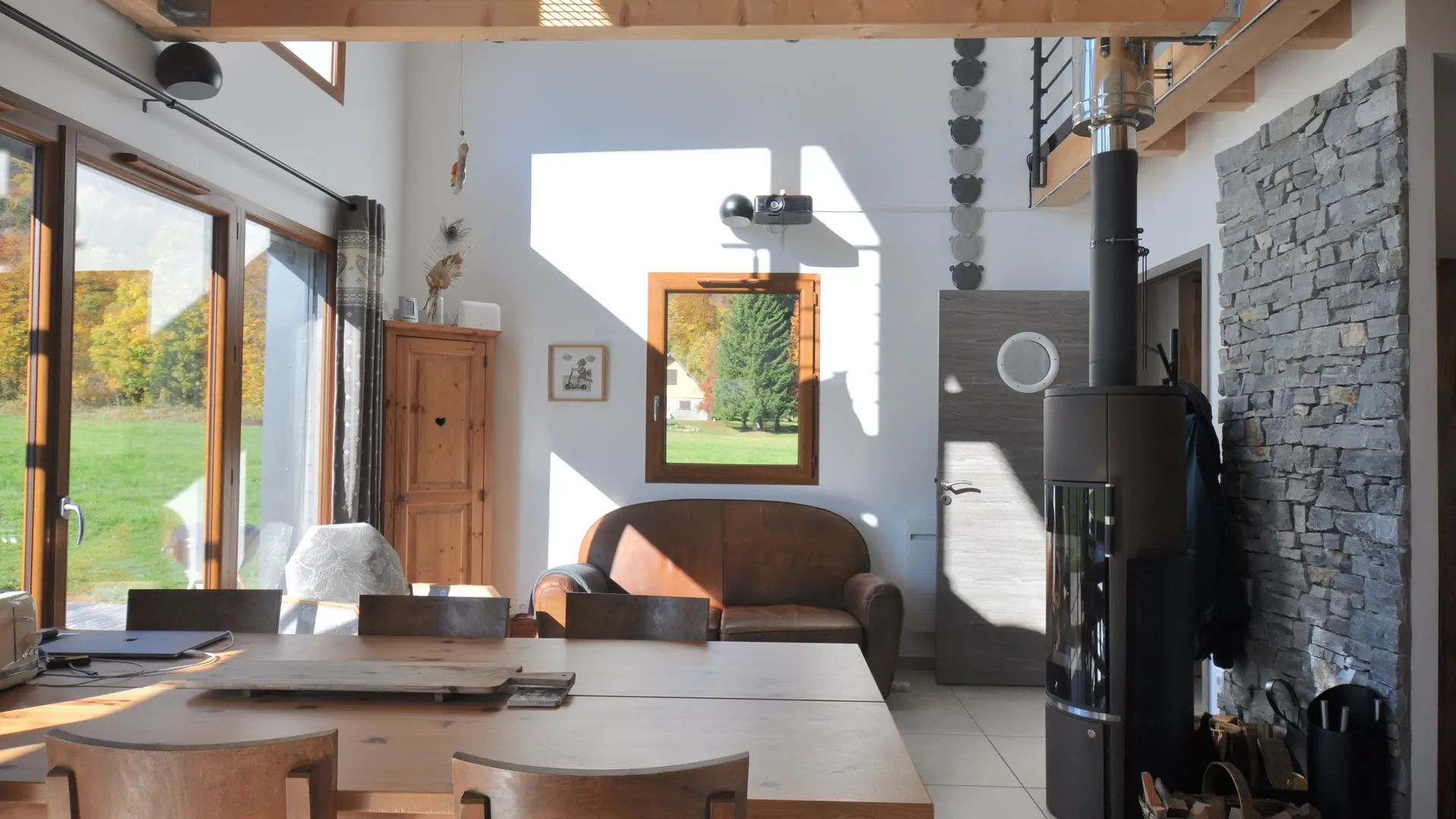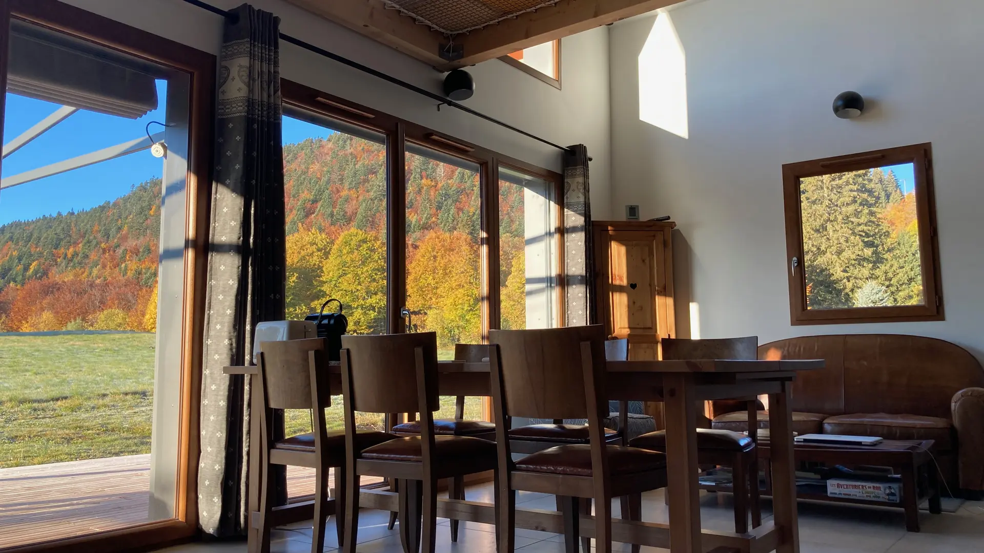 Le chalet est récent (2020) très bien isolé et de conception bioclimatique pour capter et vous faire profiter de tout rayon de soleil. Il est situé au calme, à deux pas des circuits de ski de fond, et à 10-15 minutes à pieds du centre du village.