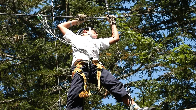 Une évolution dans les arbres sur passerelles, cabanes suspendues, toboggans, trampoline géant, labyrinthe et tyroliennes ! Plus de 135 ateliers et jeux repartis sur 11 parcours et 2 ateliers d’escalade.